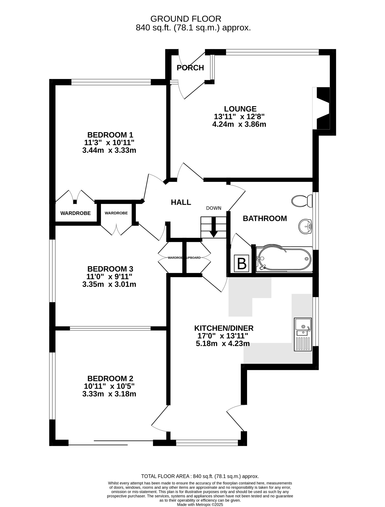 Double glazed window to the side aspect and single glazed high level window to the rear aspect. Two built-in wardrobes. Radiator.