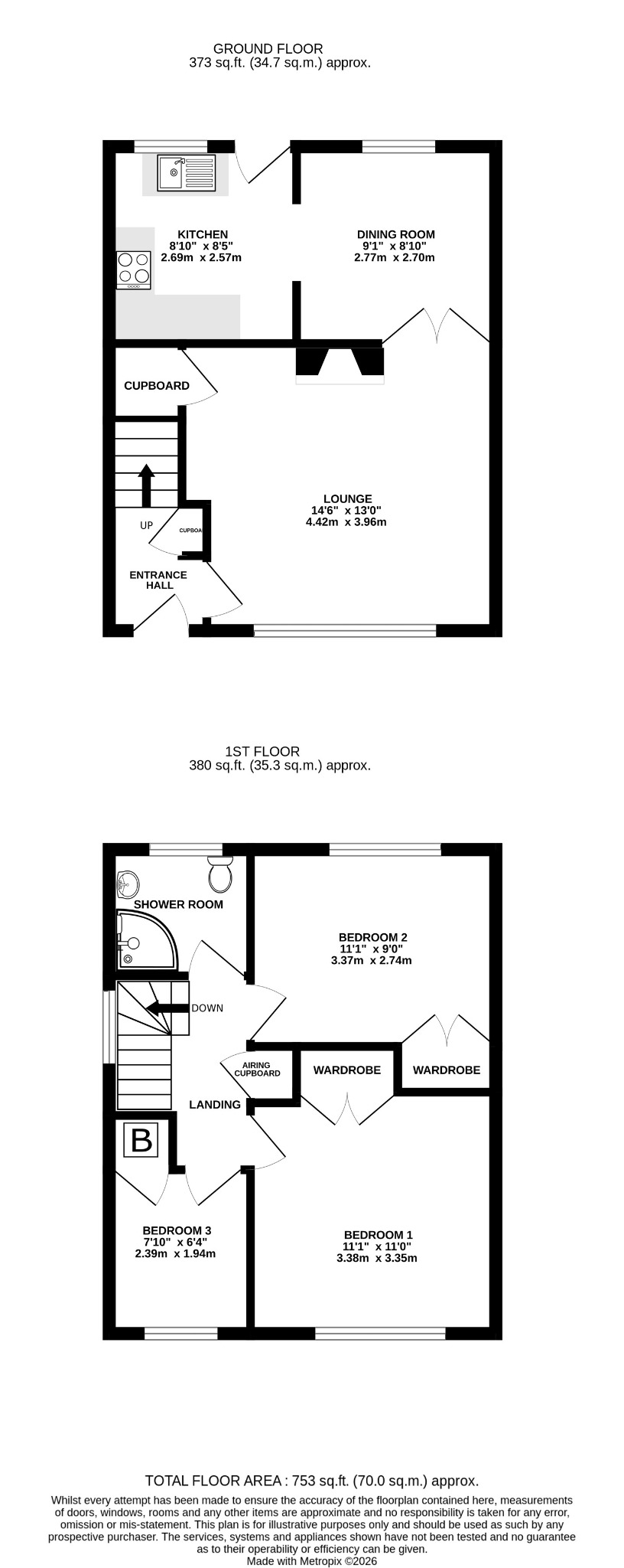 Double glazed window to rear elevation. Quadrant shower cubicle. Vanity unit with wash hand basin and storage beneath. Low level close coupled WC. Heated chrome towel rail. Tiled walls.