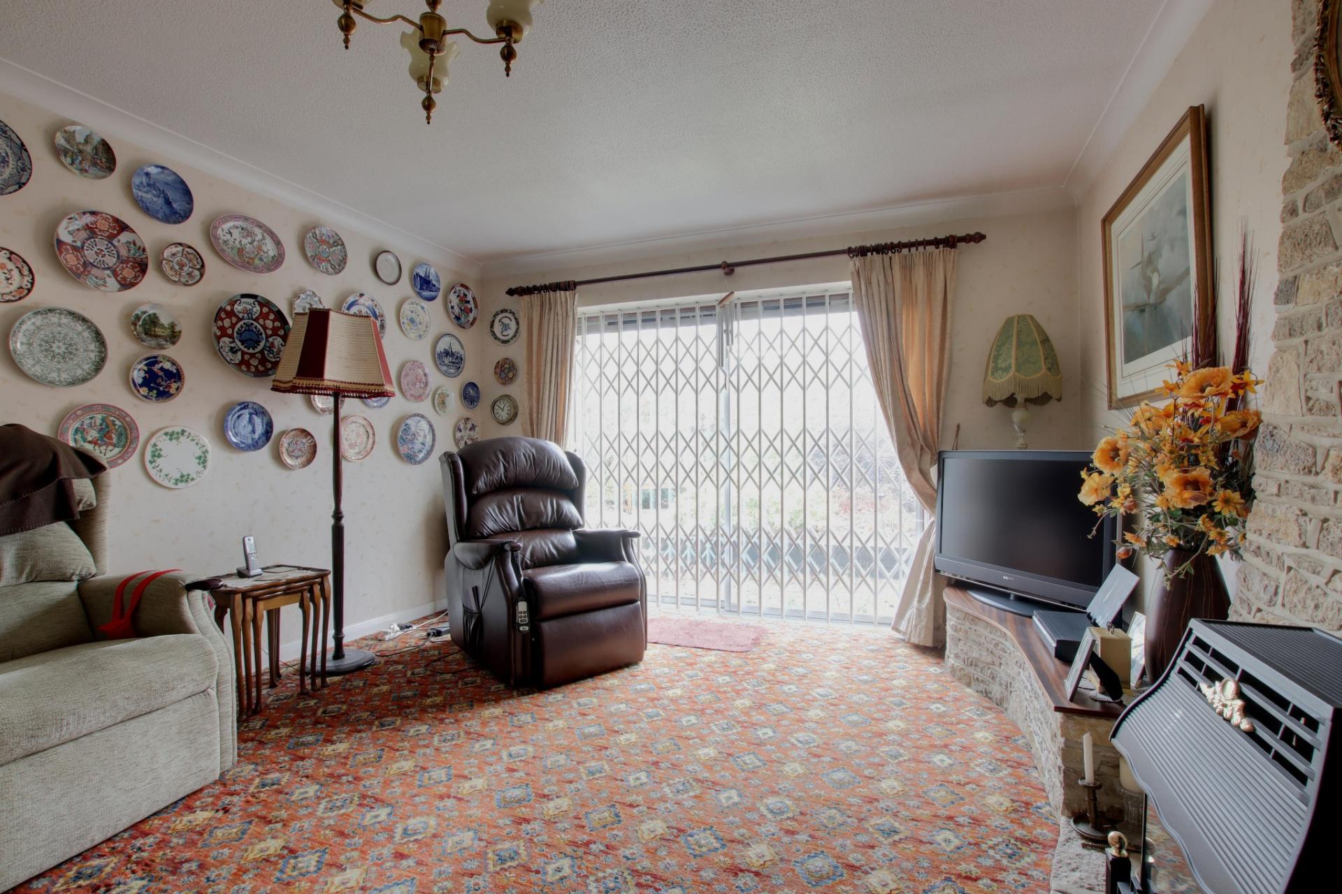 Double glazed patio doors leading to garden. Brick fireplace with coal effect gas fire and display plinths either side ideal for TV display and entertainment system. Radiator. Coved and textured ceiling.