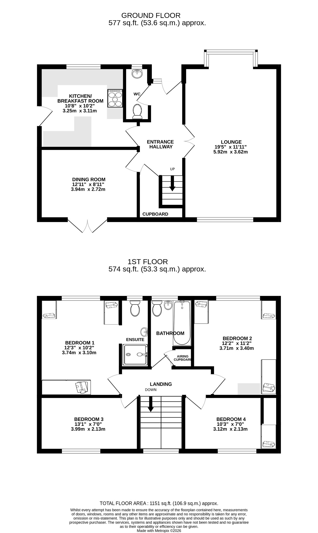 Double glazed window to the front aspect. Suite comprising bath with hand shower. Wash hand basin. Low level WC. Part feature panelled walls. Radiator. Tiled flooring. Airing cupboard.