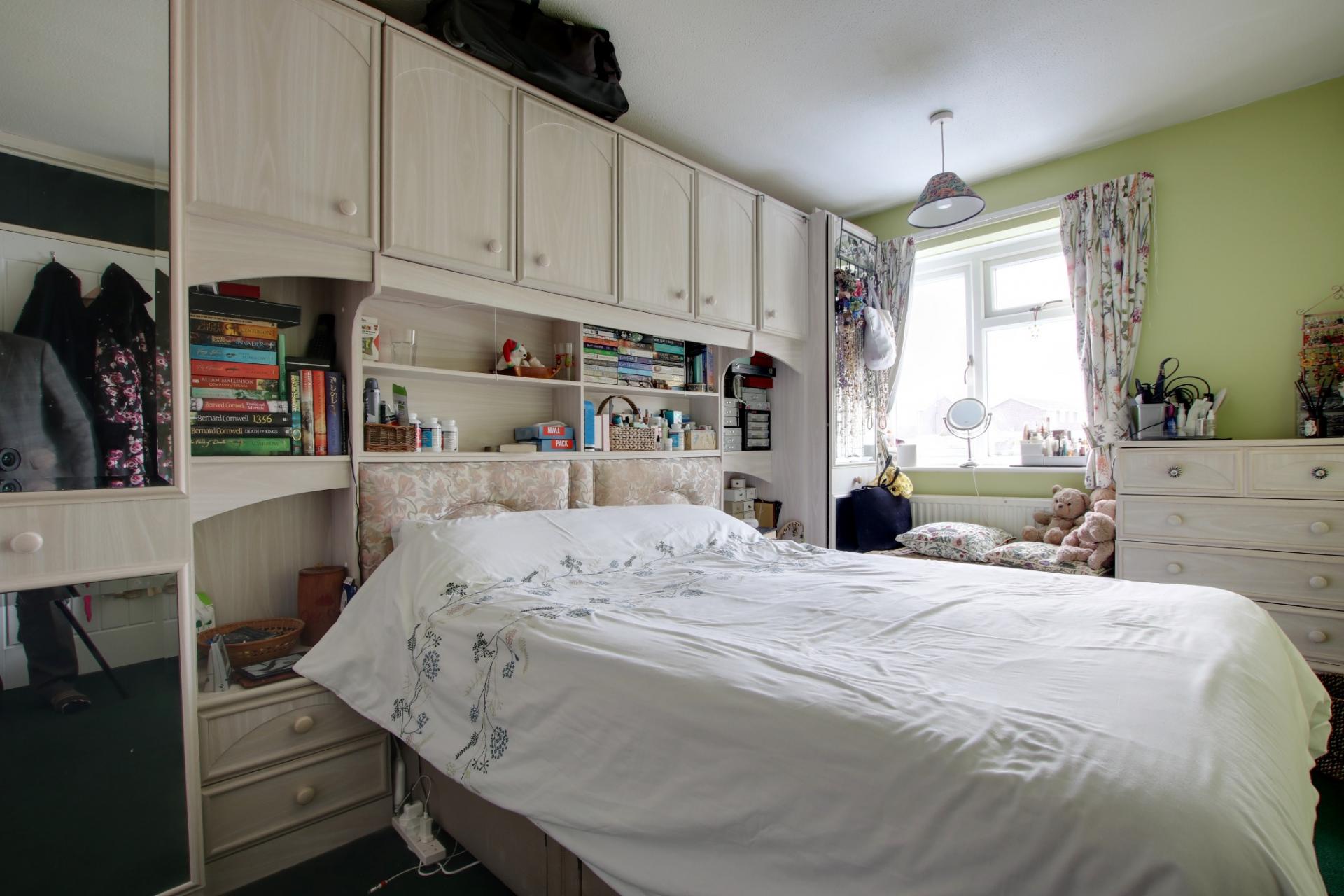 Double glazed window to rear elevation. Radiator. Range of built-in bedroom furniture including wardrobes, bedside cabinets and overbed storage.