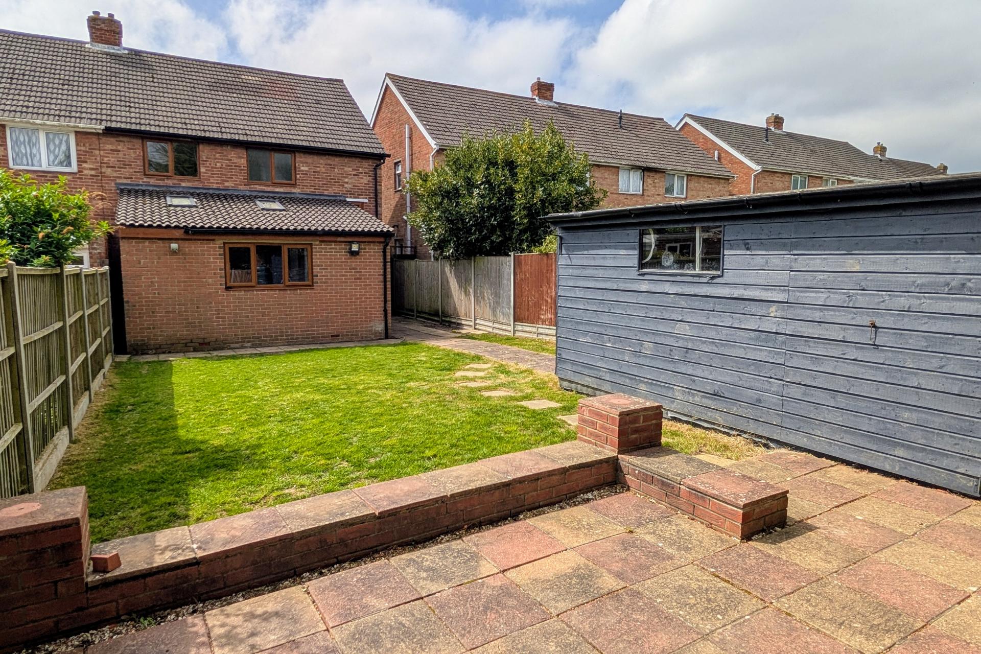 The rear garden can be found mainly laid to lawn and is fence enclosed with garden workshop and store.