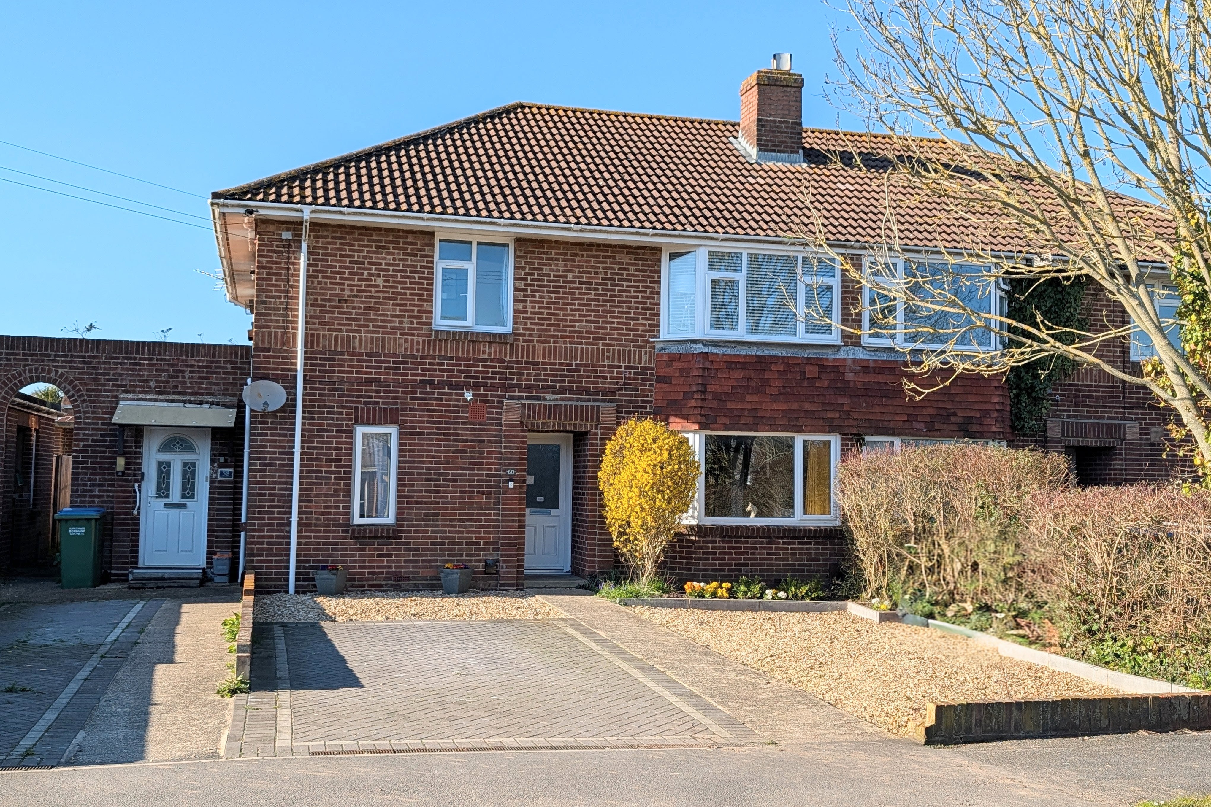 To the front of the property, there is a sizeable front garden with a path leading down to the timber garden shed at the bottom of the garden and an additional paved area for bins.