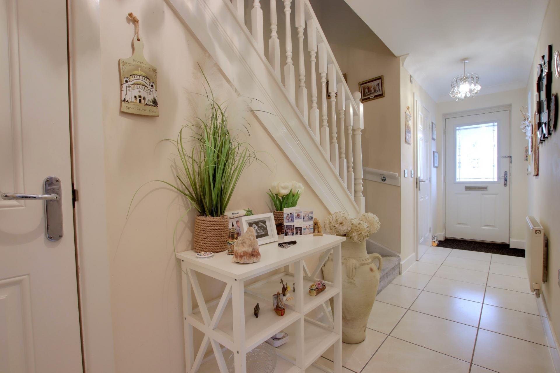 Stairs to first floor. Radiator. Tiled flooring. Understairs storage cupboard. Coved and skimmed ceiling. Doors to: