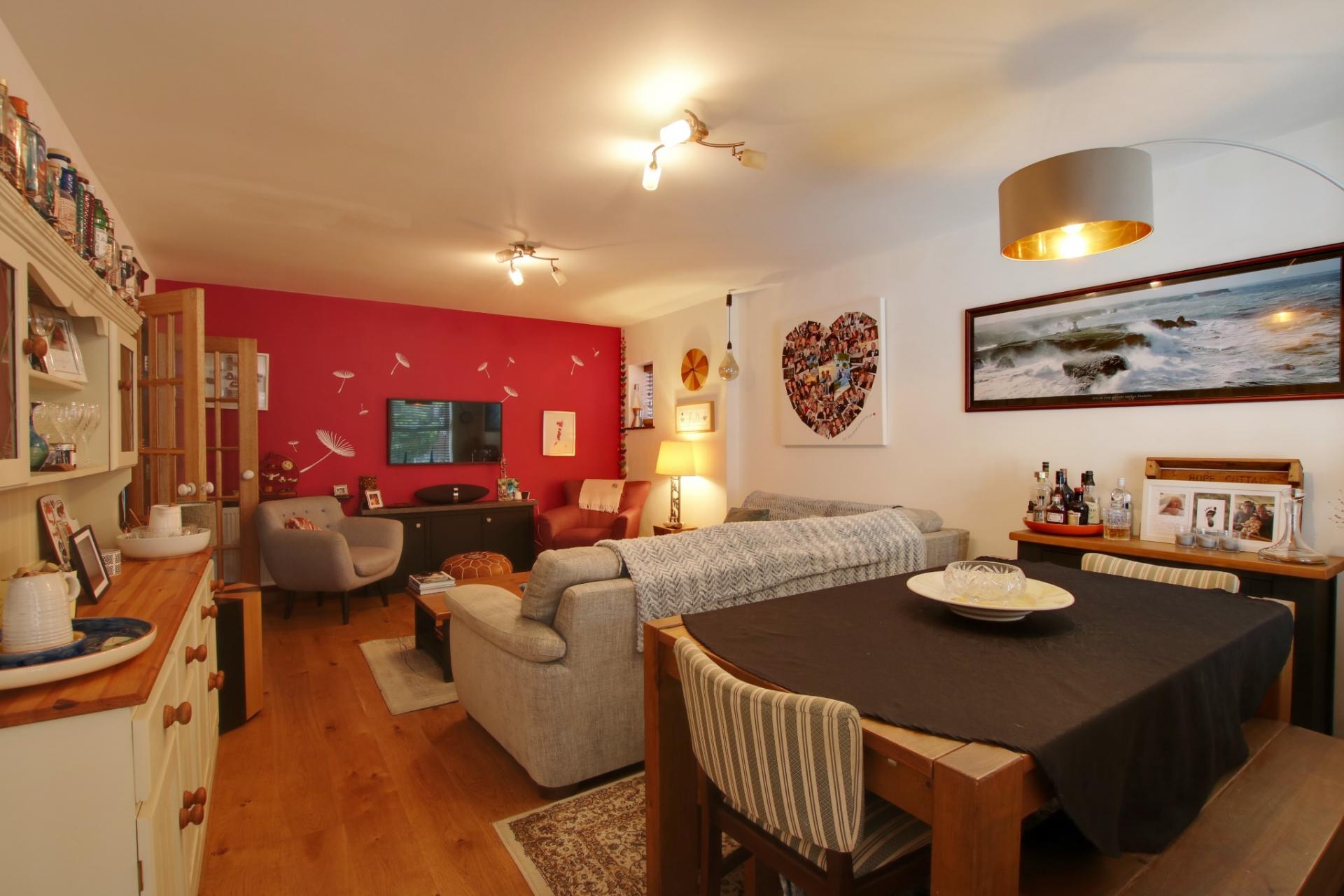 Double glazed window to rear elevation and double glazed window to side. Two radiators. Door to cloakroom and open plan to kitchen.