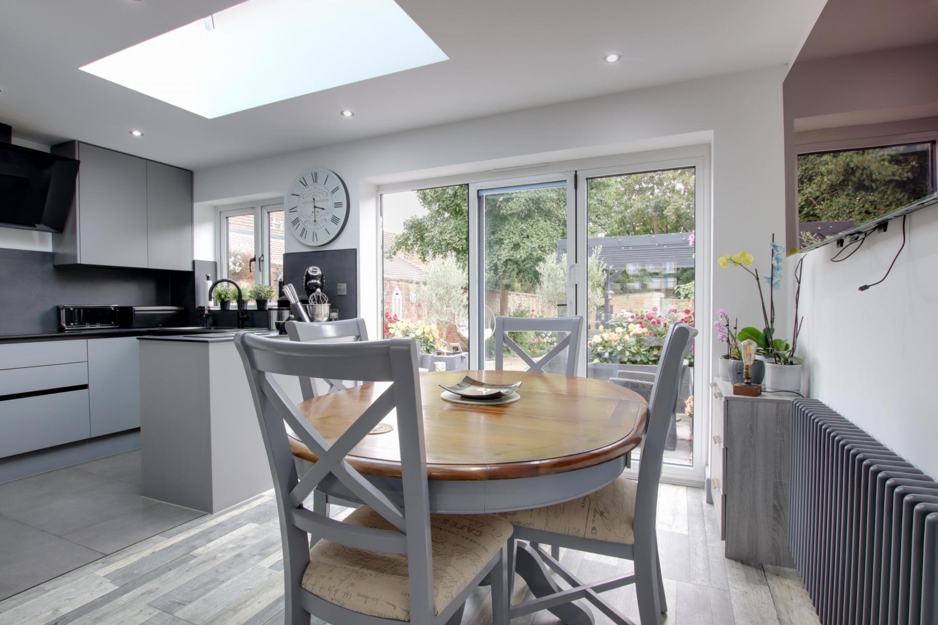 Double glazed bi-folding doors leading to the rear garden. Smooth ceiling with inset spotlighting. Two column style radiators. Wood effect flooring. Opening to: