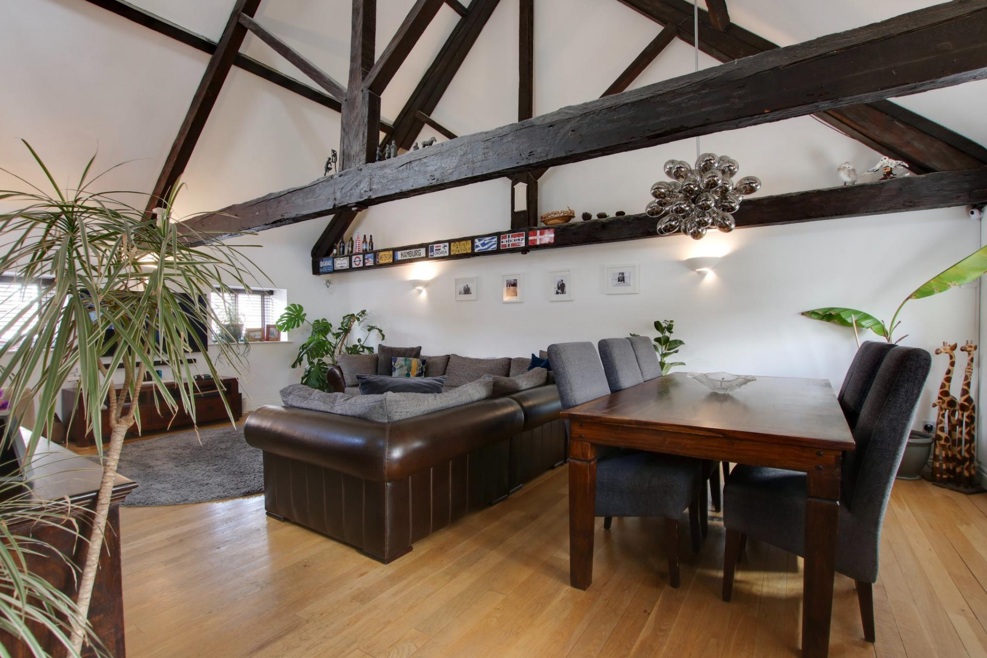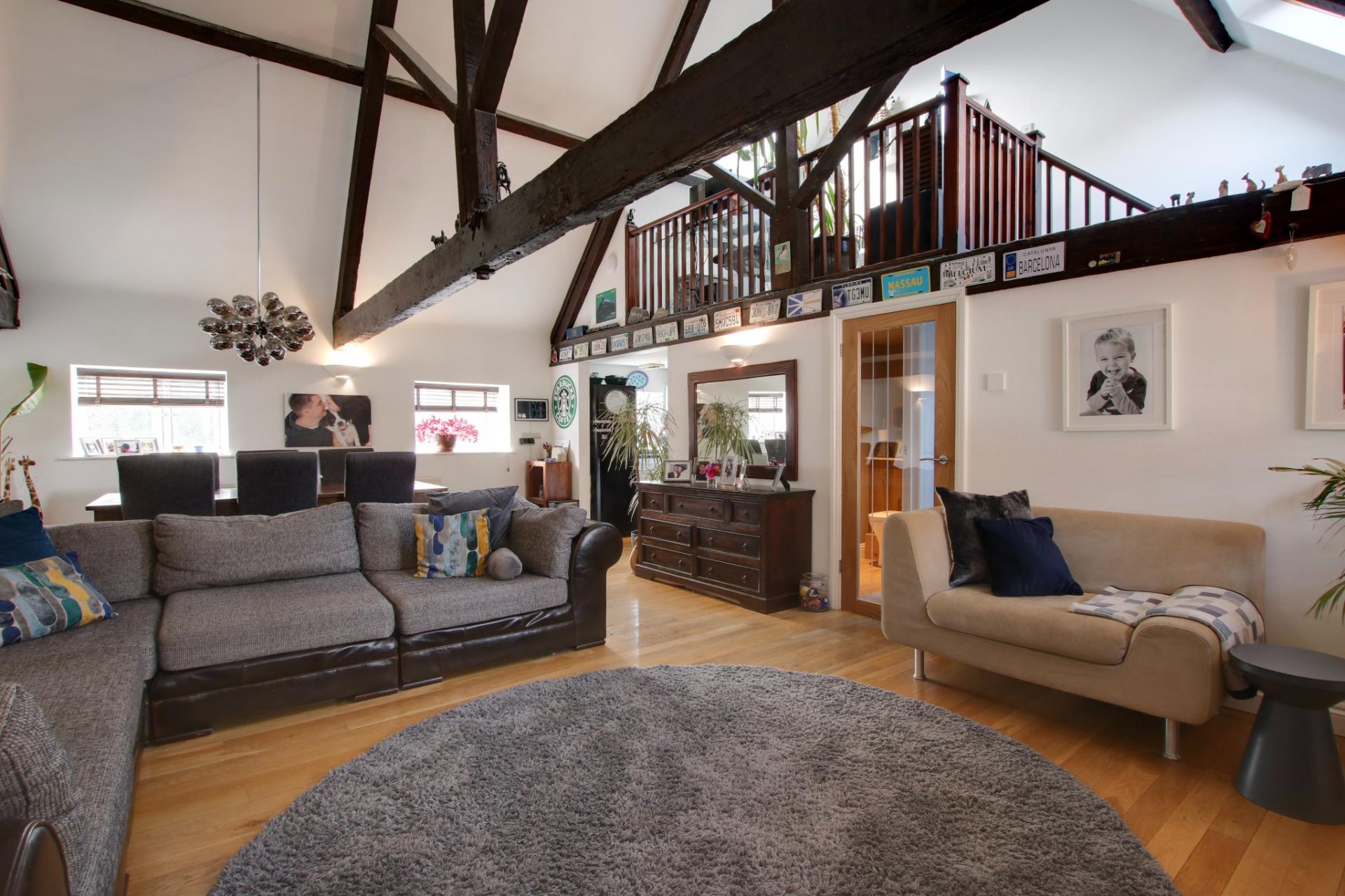 - IMPRESSIVE LIVING ROOM WITH VAULTED BEAMED CEILING