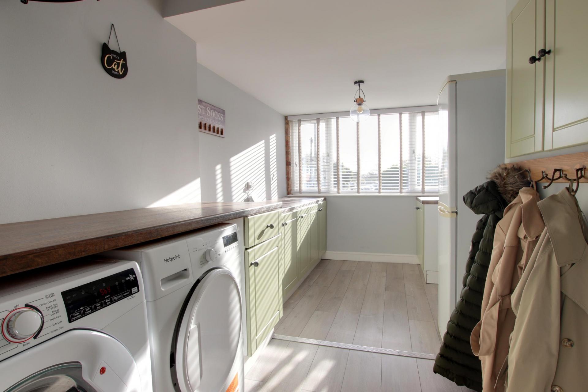 Double glazed window to the front aspect. Smooth ceiling. Low level units with contrasting work tops. Space and plumbing for washing machine and fridge/freezer. Meter cupboards. Wood effect laminate flooring.
