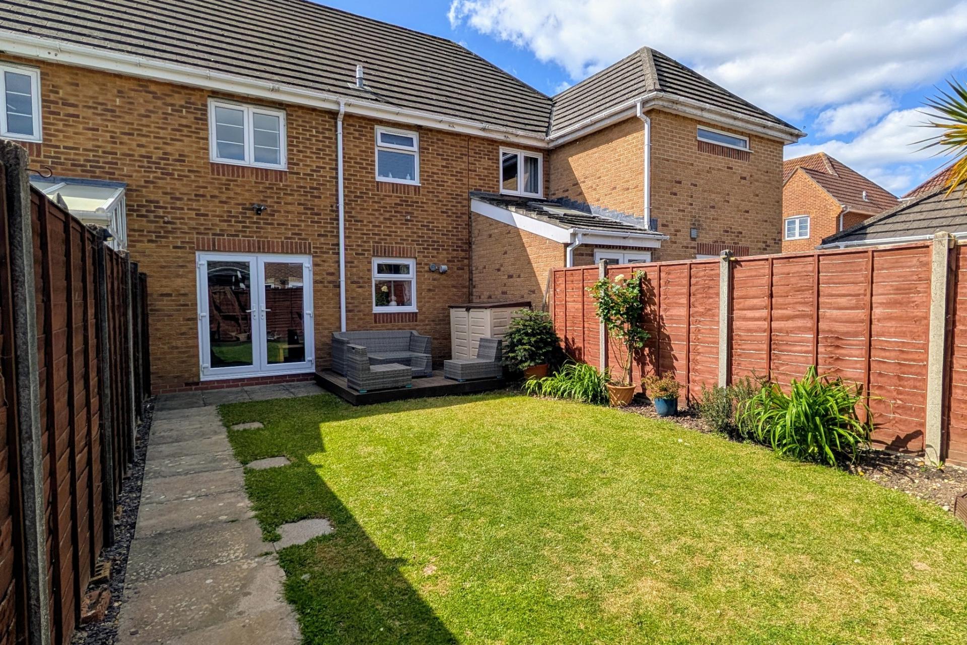 The rear garden has a path leading to the gated rear pedestrian access and an initial decked seating area with the remainder of the garden being laid to lawn.