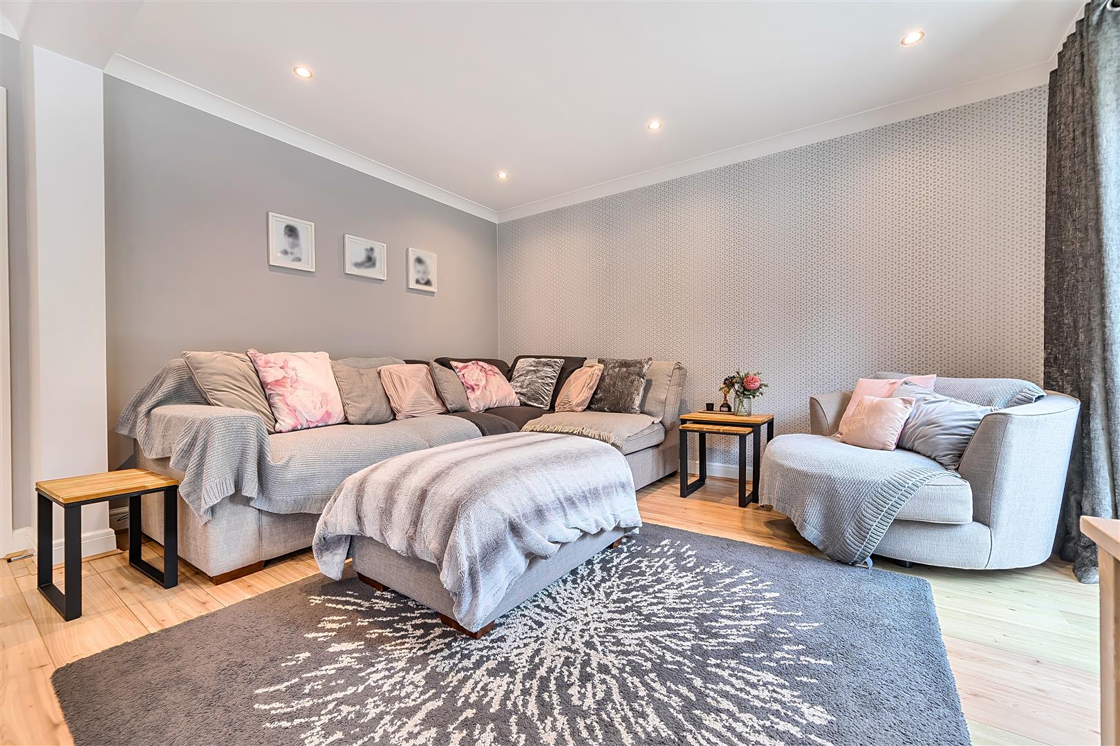 The home features two well-appointed bathrooms, ensuring ample facilities for family living. The low-maintenance, west-facing rear garden is a wonderful outdoor space, perfect for enjoying the afternoon sun or hosting summer gatherings with friends and family. With parking available for up to three vehicles, this property caters well to those with multiple cars or visiting guests.
