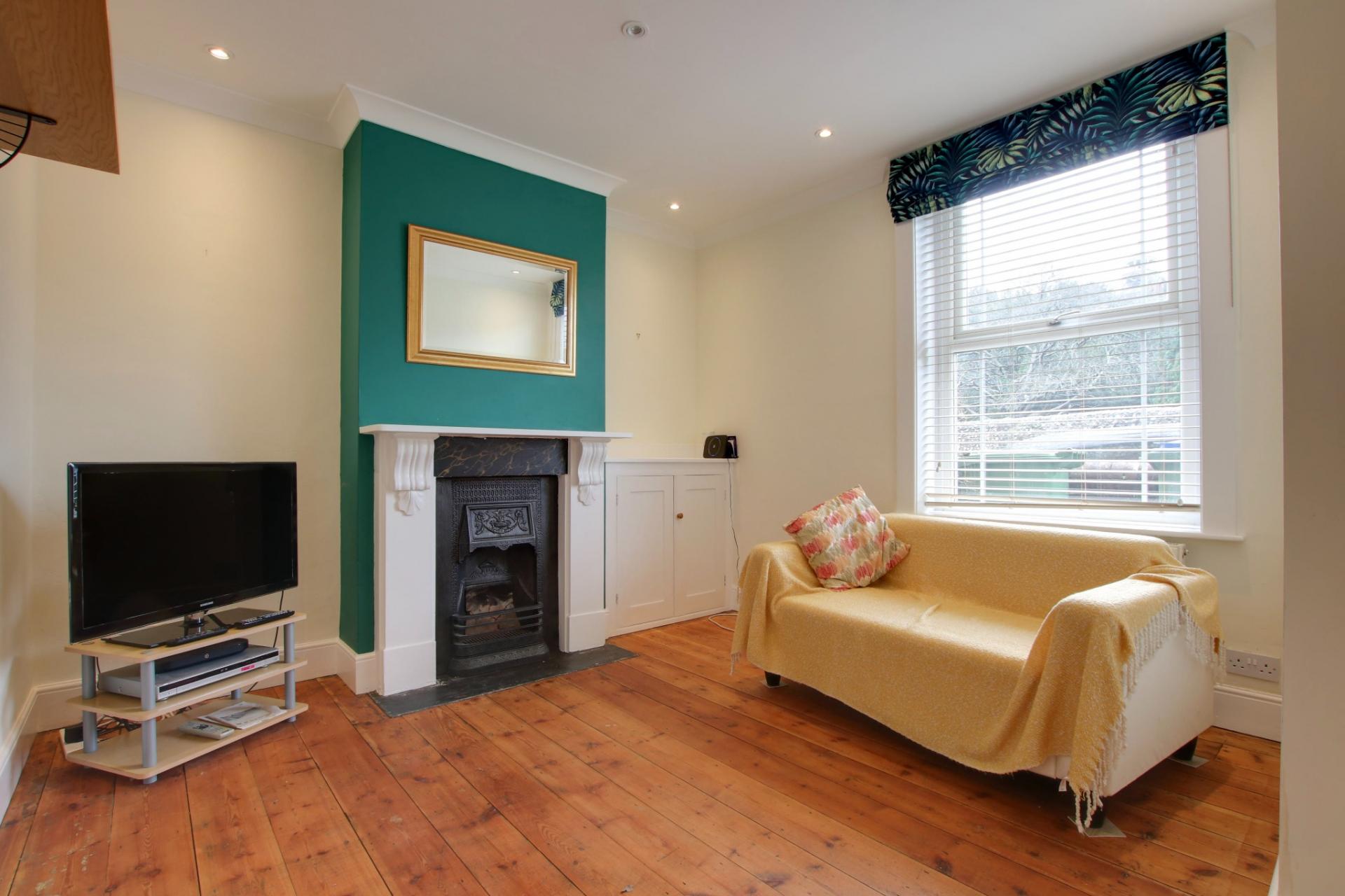 Double glazed window to rear elevation. Chimney breast with feature cast iron fireplace. Radiator. Wooden flooring. Door concealing staircase to first floor and doors to kitchen and WC.
