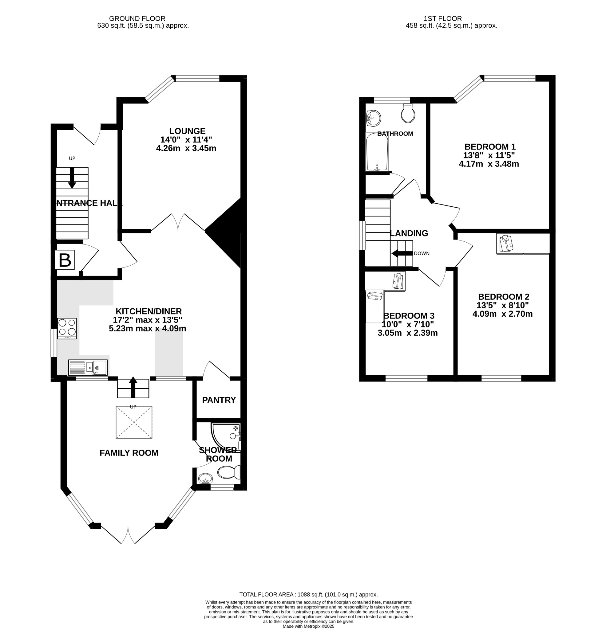 Double glazed window to rear elevation. Corner shower cubicle with electric shower unit. Low level close coupled WC. Wash hand basin. Splashback tiling. Tiled flooring. Extractor fan. Wall mounted heater.