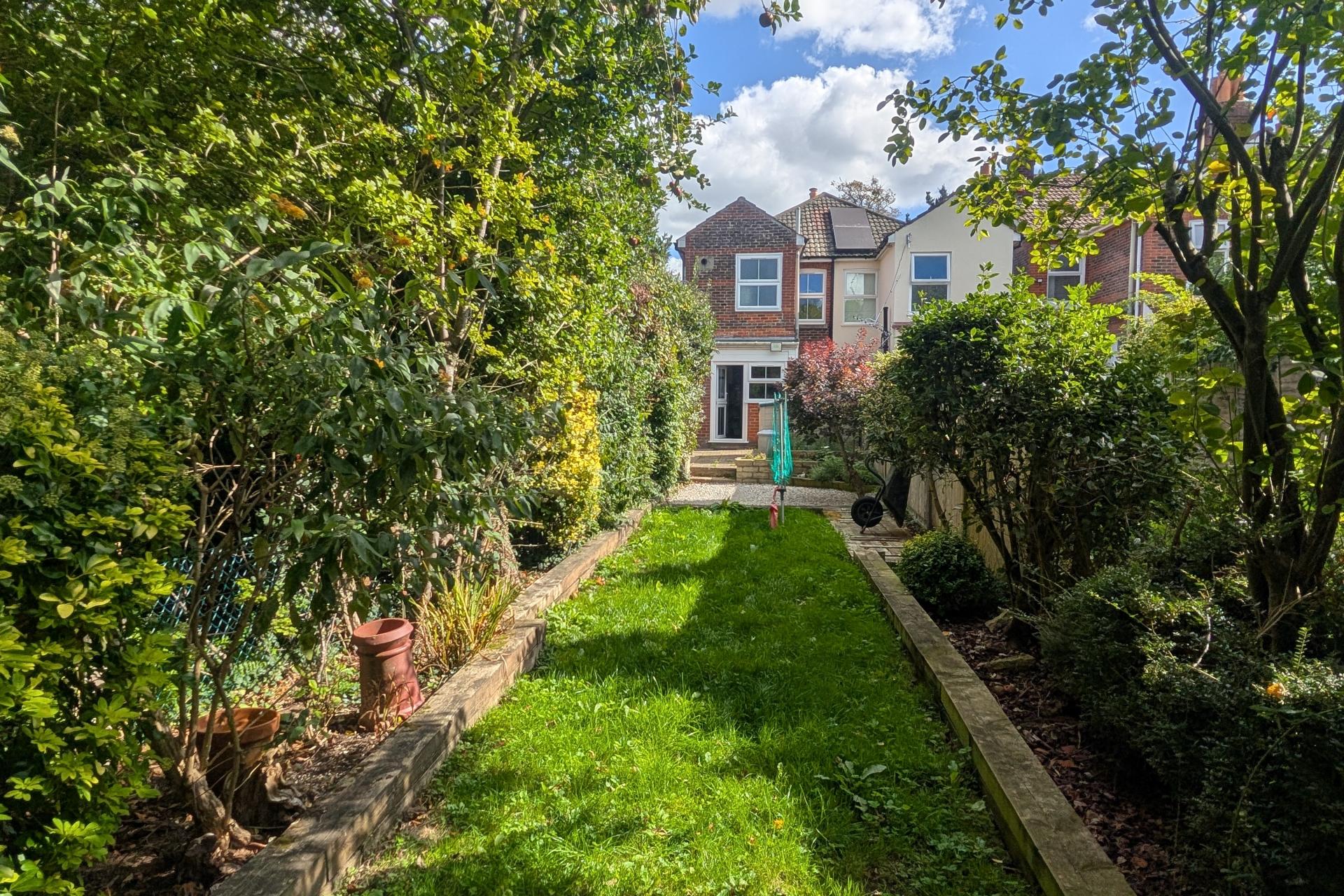 The rear garden has a patio area adjacent to the house. The majority of the garden can be found mainly laid to lawn with flower and shrub borders. There is a large garden shed towards the end of the garden. The garden has gated side pedestrian access.