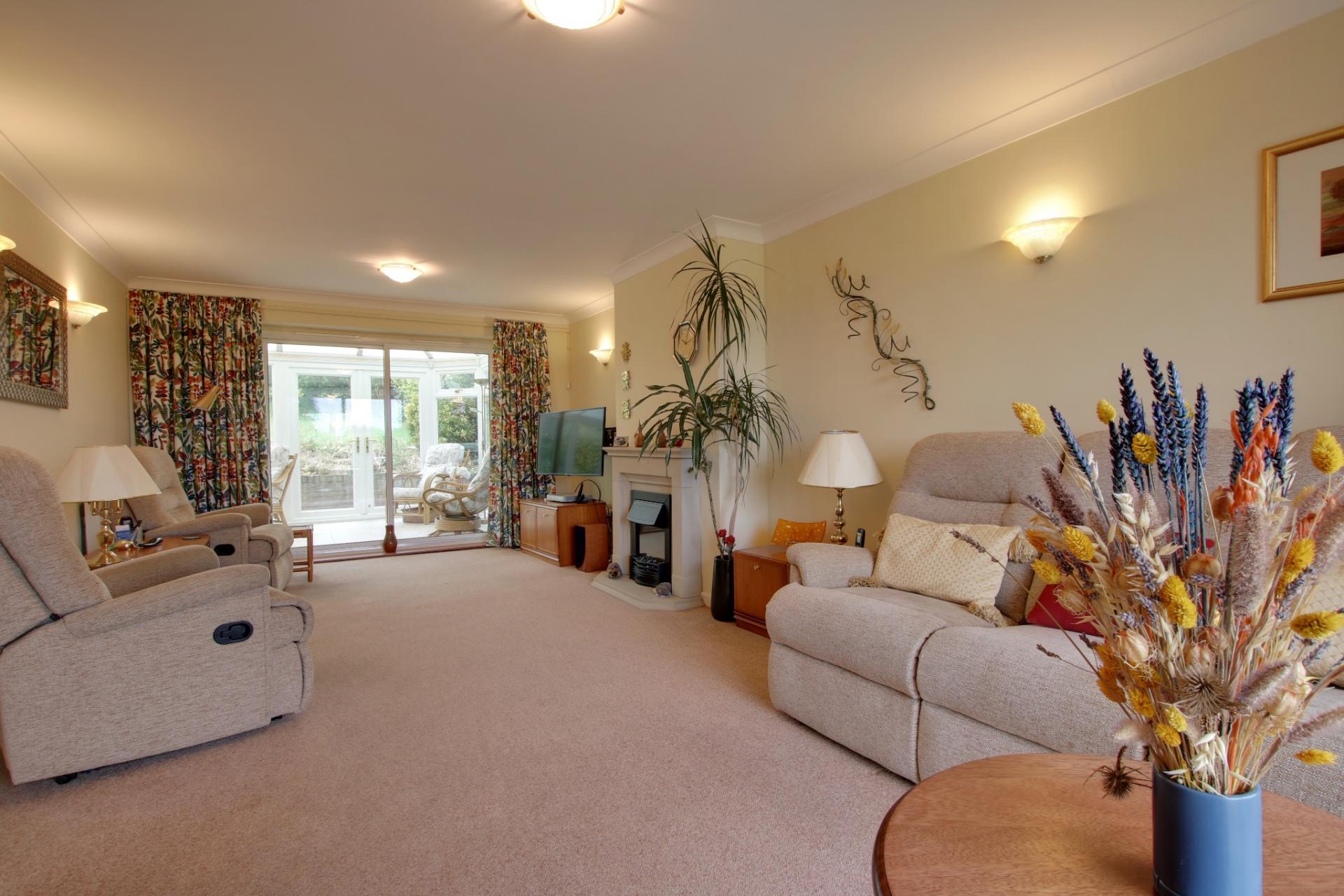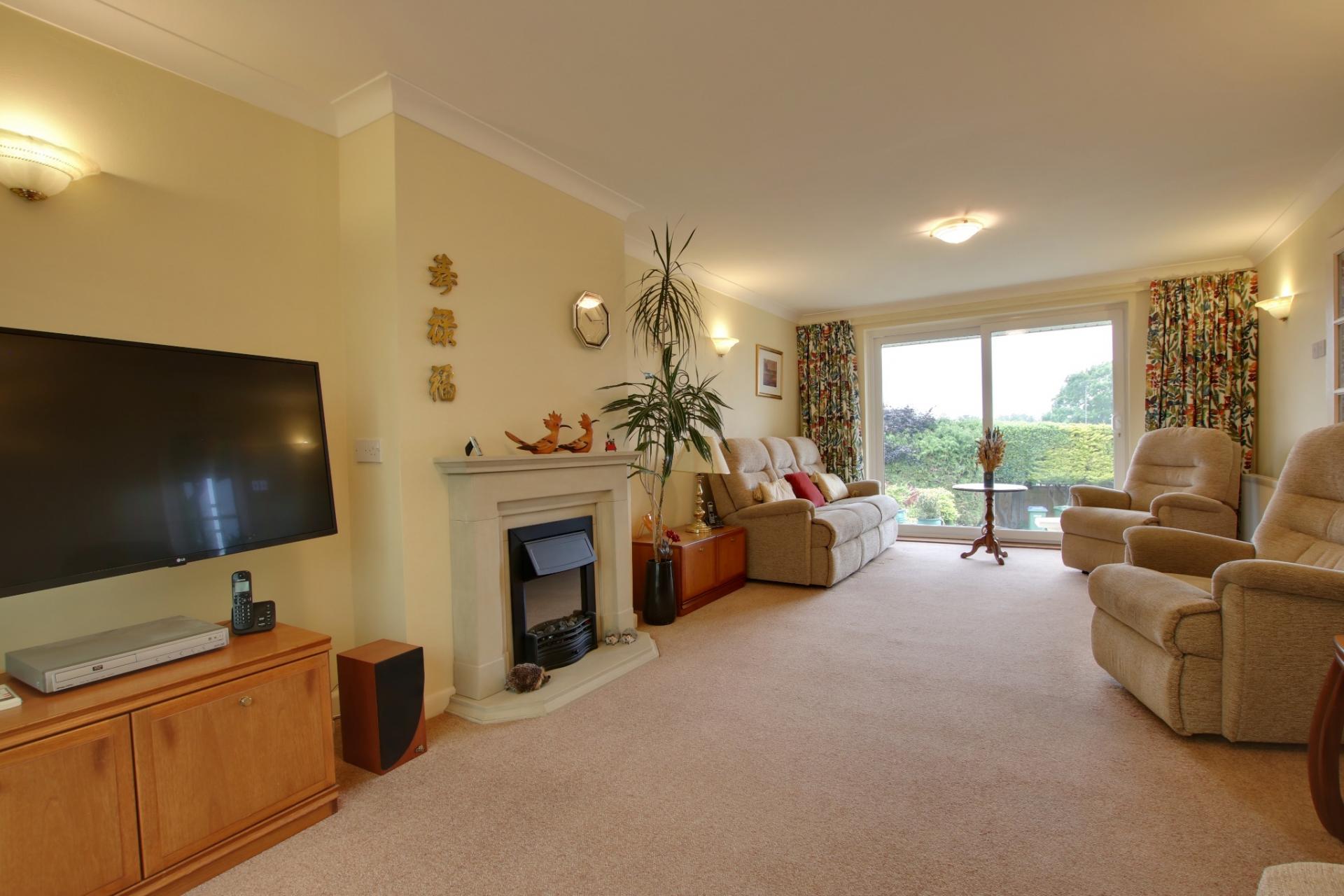 Double glazed patio doors to front patio and double glazed patio doors to conservatory. Chimney breast with feature fireplace with coal effect electric fire. Two radiators. Wall lights.