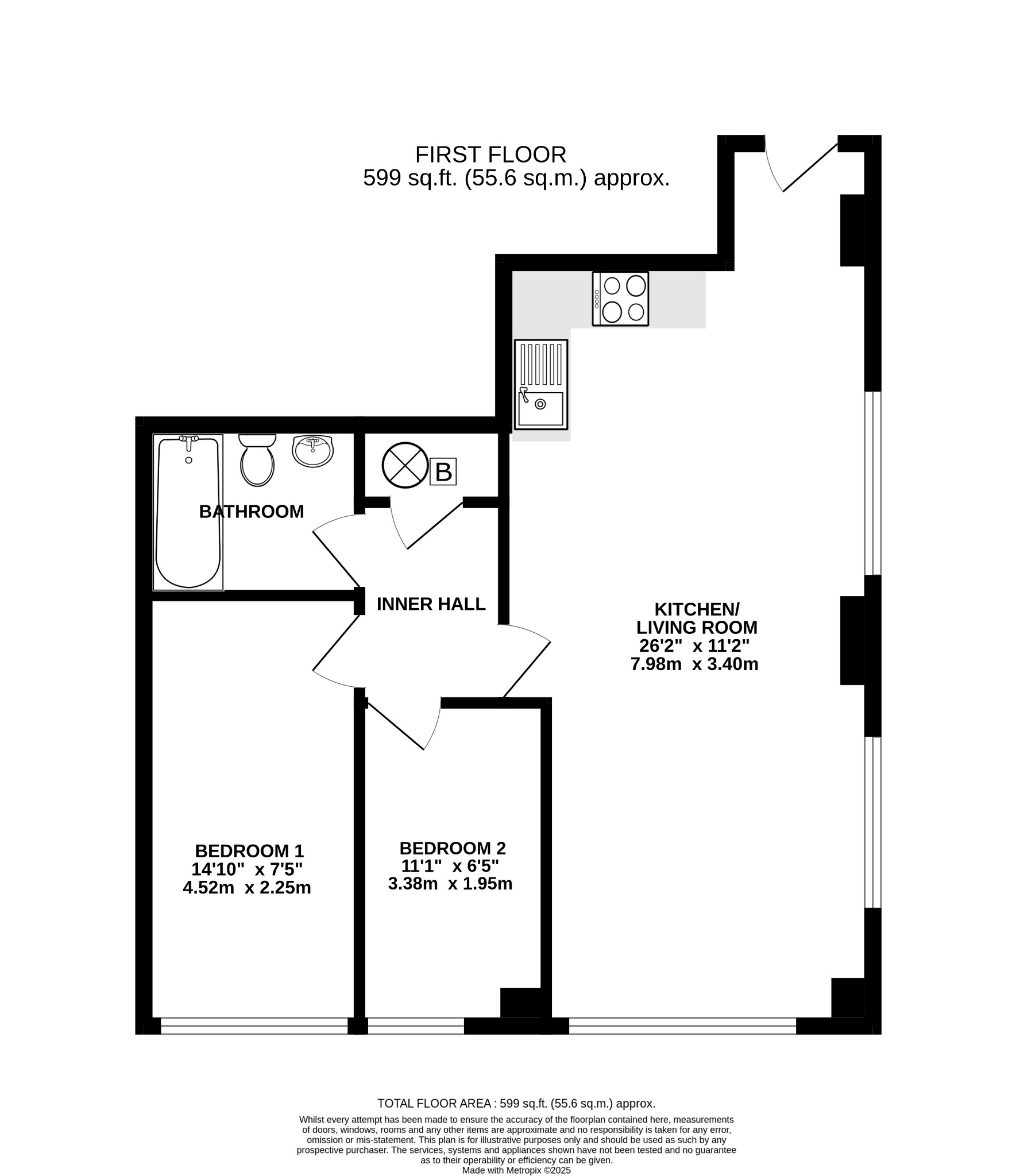 Dual aspect with two double glazed windows to side aspect and double glazed window to the rear aspect. Smooth ceiling with inset spotlighting and hanging pendant. Intercom system. Matching wall and base units with contrasting worktops. Inset stainless steel sink and drainer. Four ring electric hob with extractor above. Fitted oven/grill. Space for washing machine and fridge. Radiator. Luxury vinyl tiled wood effect flooring.