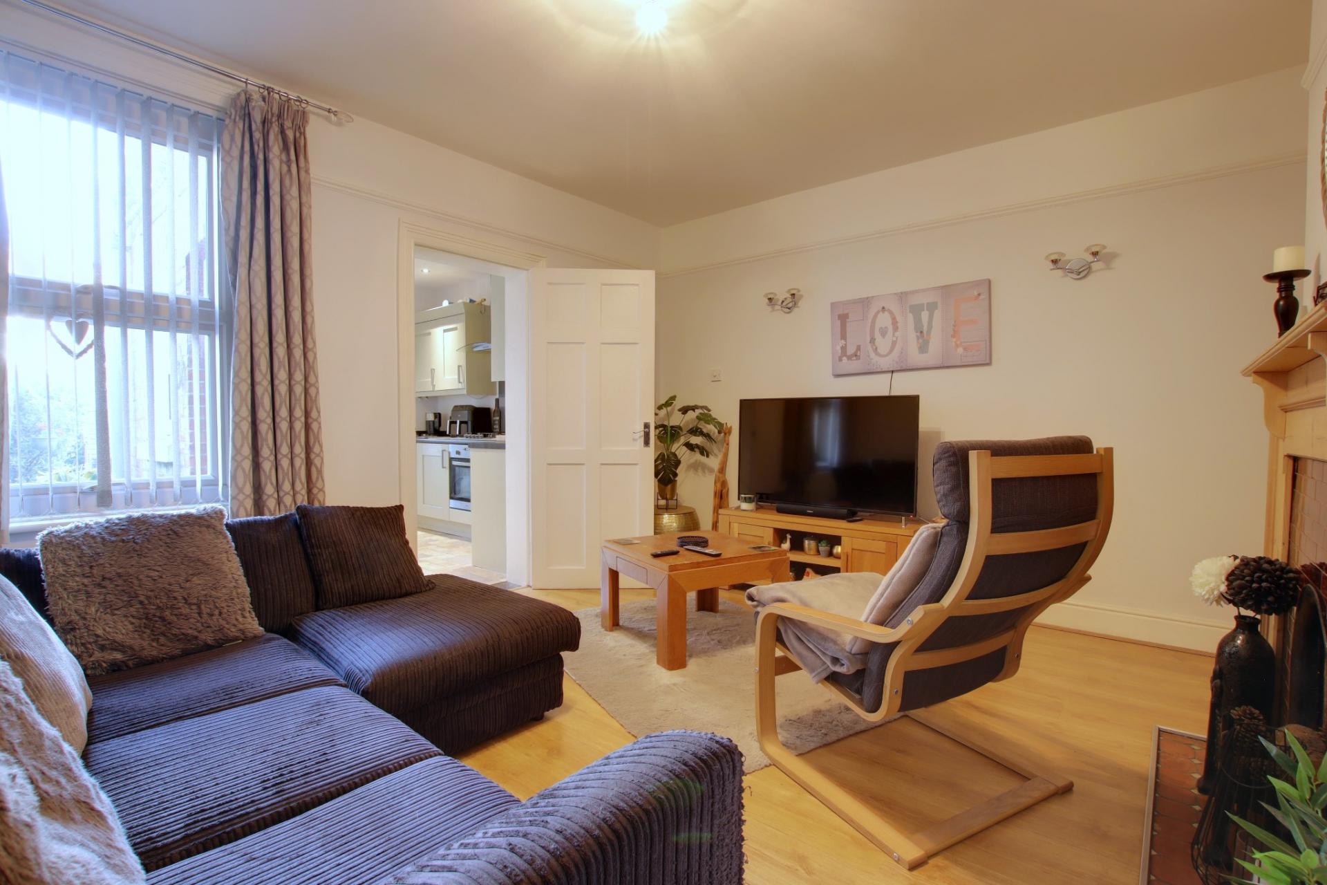Double glazed window to the front aspect. Smooth ceiling. Picture rail. Feature cast iron fireplace with wooden surround and tiled hearth. Radiator. Wood effect laminate flooring.