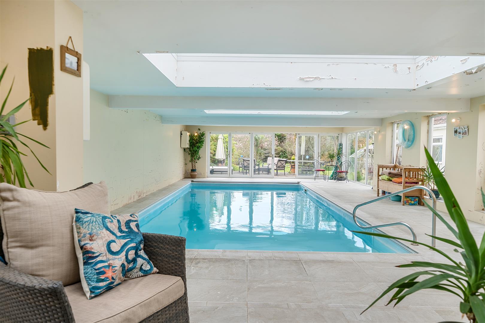 With four well-appointed bedrooms and three modern bathrooms, this residence caters to the needs of a growing family. The highlight of the home is undoubtedly the heated indoor swimming pool, complemented by a sauna, creating a private oasis for leisure and wellness.