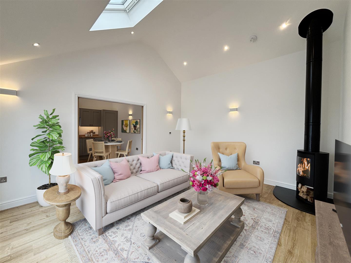 This beautifully finished 2-bedroom home features a superb open-plan kitchen/living space, vaulted ceilings, log burner and sliding doors to a private patio and garden. Set in a peaceful rural courtyard with parking and countryside views.