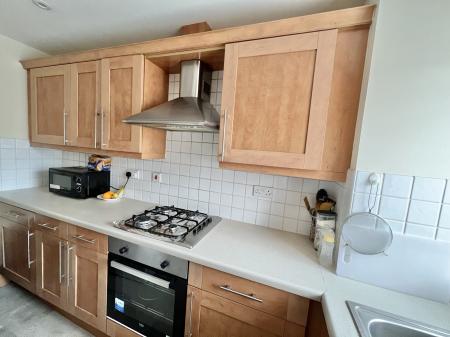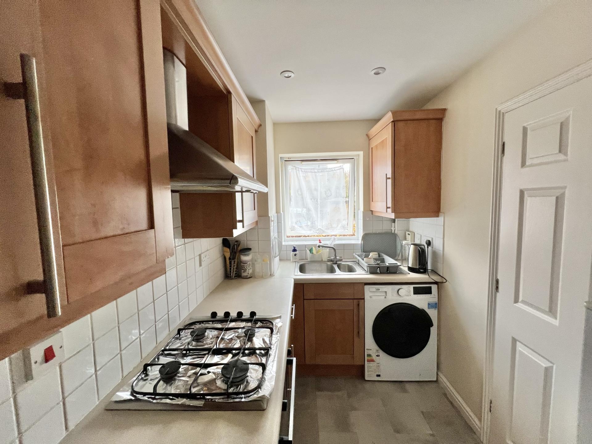 The well-proportioned living accommodation comprises a front aspect sitting room that overlooks the front of the property. An archway leads through to the front aspect fitted kitchen with matching eye and low-level units, gas hob and electric convection oven. The large hallway provides access to a three-piece white bathroom suite and two well-proportioned double bedrooms. Additional features include uPVC double glazed windows throughout and a convenient storage cupboard off the hall.