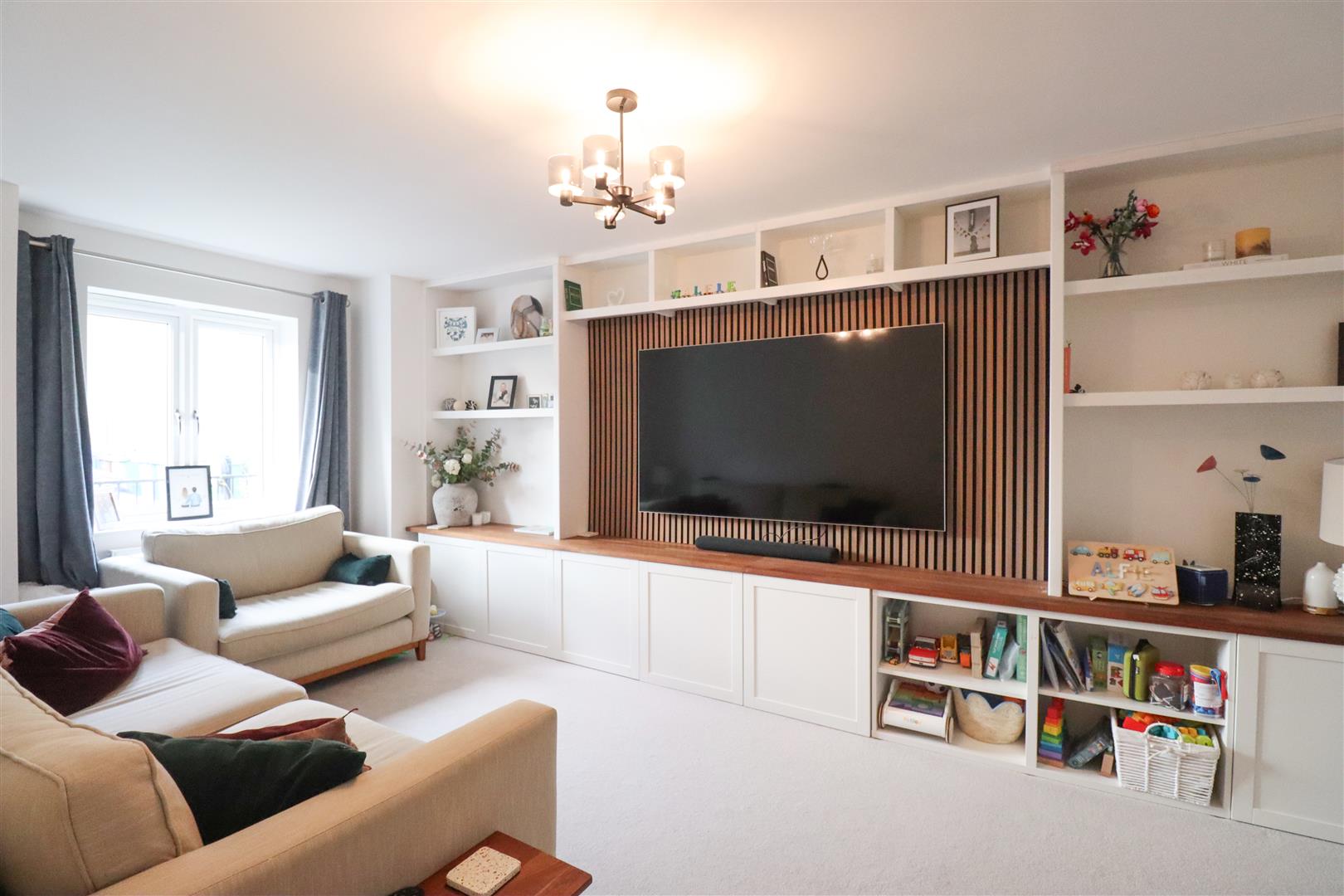 - Spacious Living Room With Feature Wall And Storage Cupboards