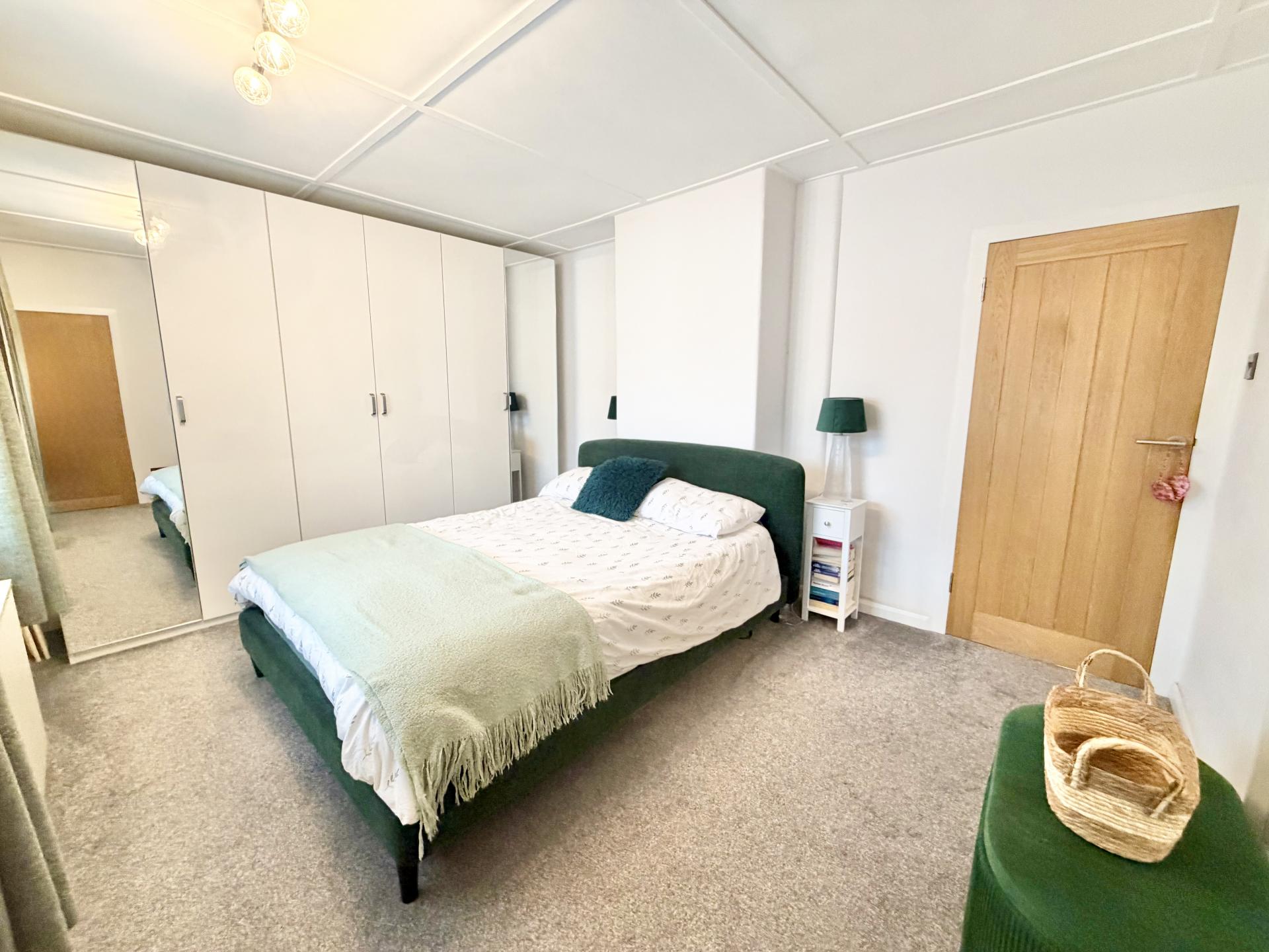 This charming property offers two generous double bedrooms, both benefiting from built-in storage. The newly fitted bathroom features a contemporary suite with a shower over the bath and a stylish vanity unit providing additional storage.