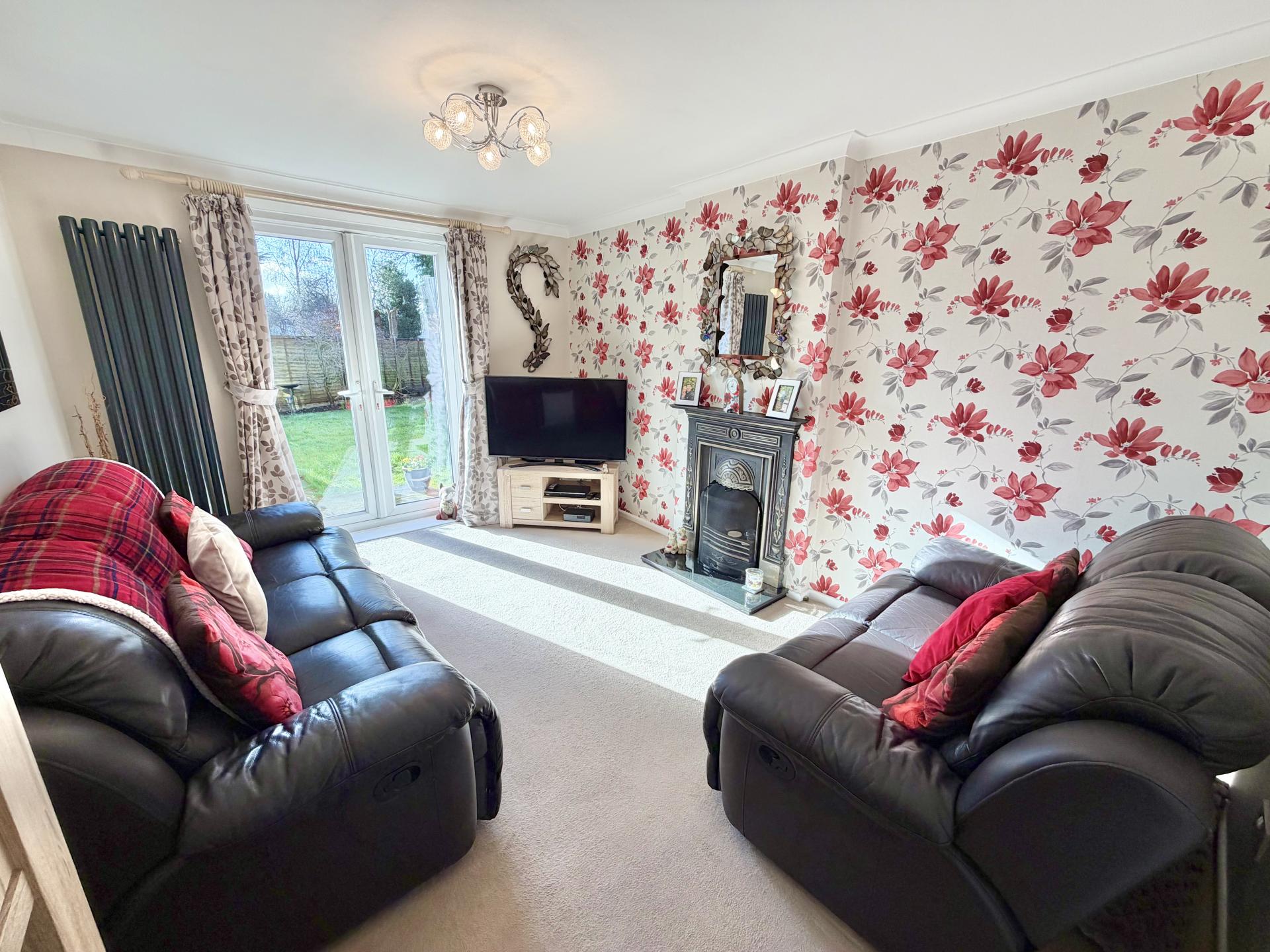 Upstairs, the property offers family bathroom with an over-the-bath shower and a vanity unit providing useful storage. Two of the bedrooms comfortably accommodate double beds and benefit from ample built-in storage, offering flexibility for families or home working.