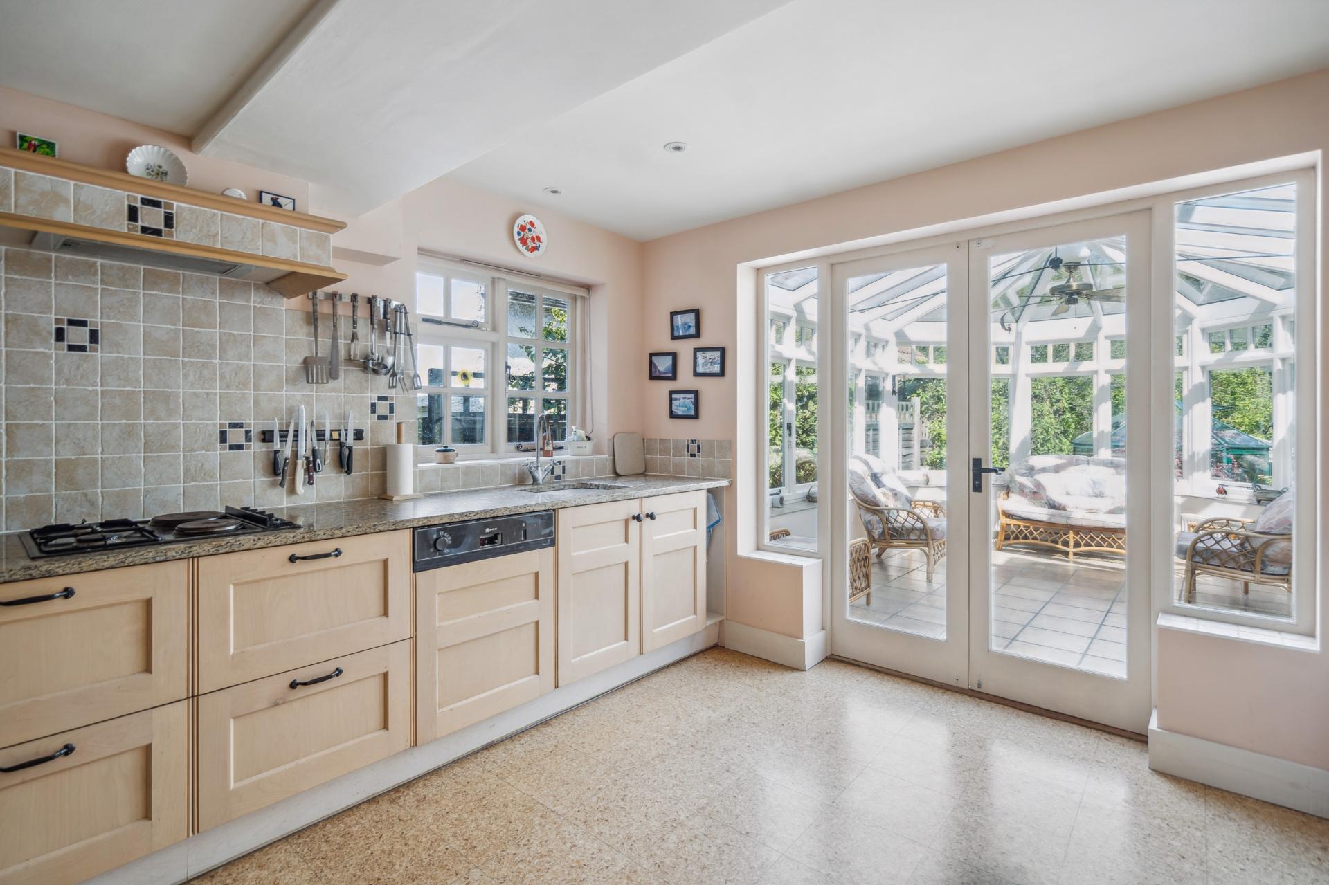 Kitchen / Breakfast Room fitted with a comprehensive range of wall and base units providing ample worktop surfaces, integrated oven, microwave and four ring hob, space and plumbing for washing machine and dishwasher. Double doors to Conservatory with tiled flooring and double doors to Garden. Snug / Sitting Room leading to inner lobby.