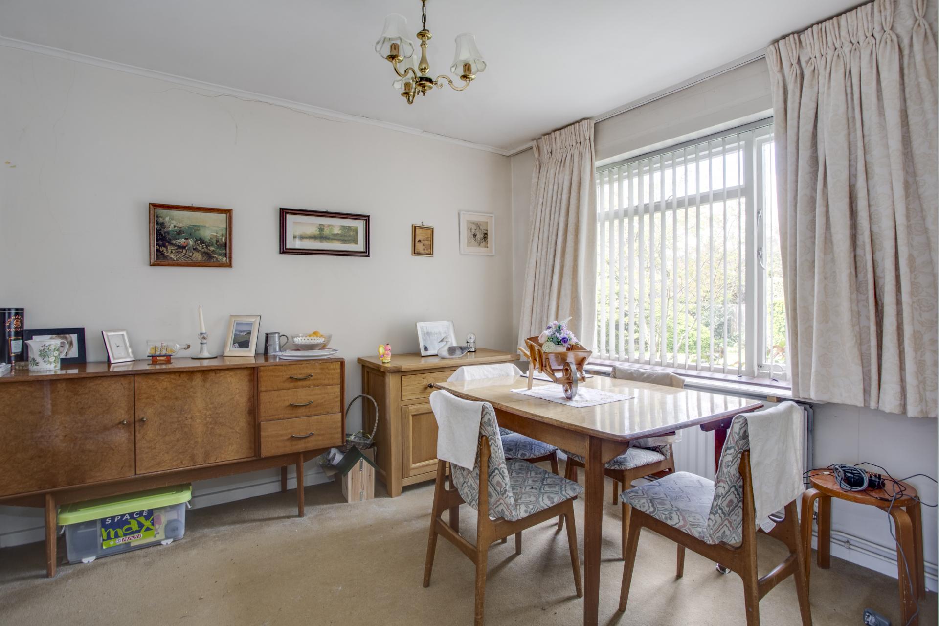To the front of the property an Entrance Porch gives access to the Living Room with feature electric fireplace and full-length window overlooking the pretty communal front gardens. This leads to the Dining Room, also overlooking the front with a stable style door to the Kitchen.