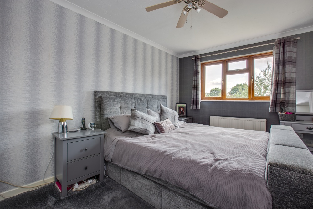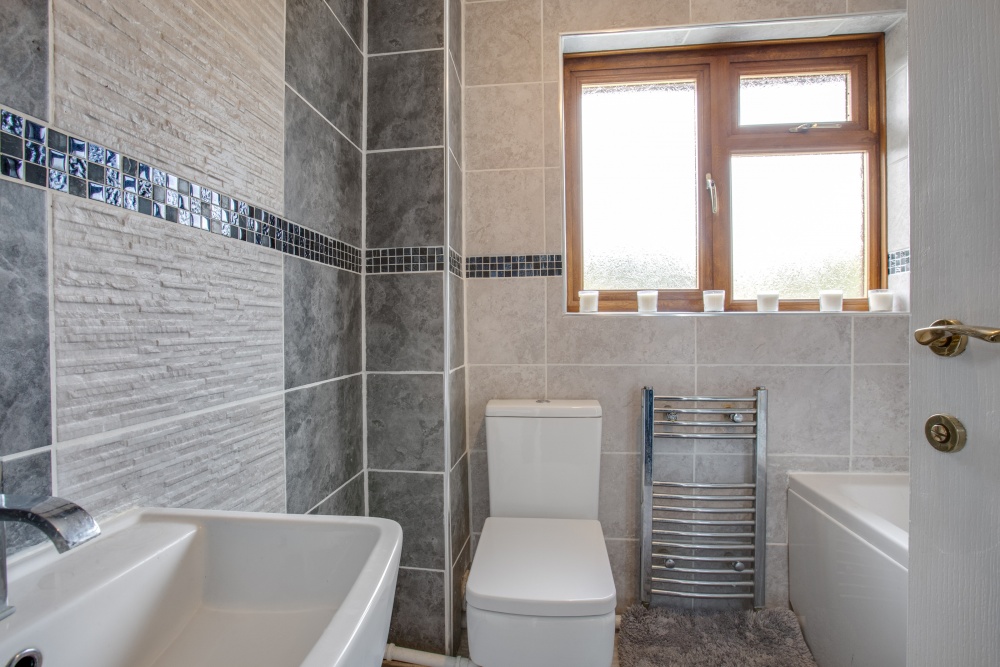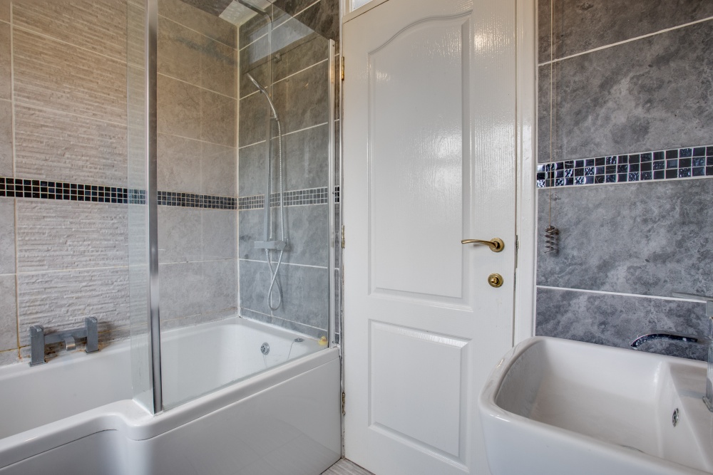 Upstairs, the accommodation comprises of three bedrooms (two of which are doubles), with fitted wardrobes to the master. There is a family bathroom with shower attachment to the bath.