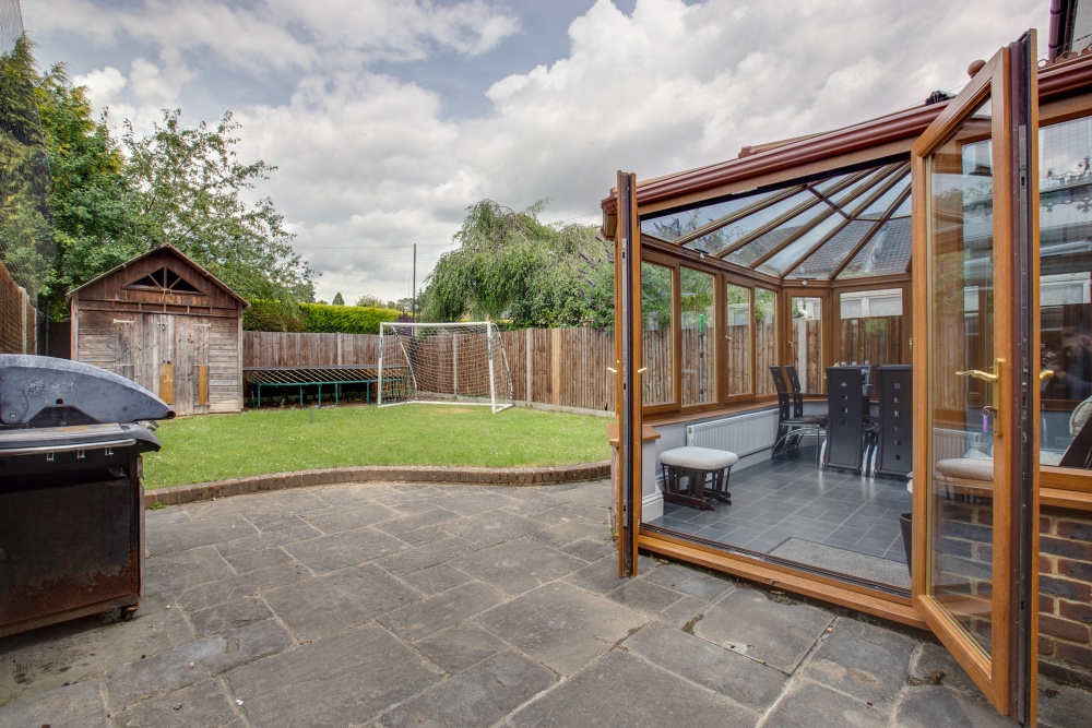 The Entrance Hall with downstairs cloakroom and under-stairs storage area leads to the Sitting Room with aspect to the front of the home. To the rear of the property there is a spacious Kitchen/Breakfast room with a range of fitted base and eye level units and opening into a Conservatory that is used as a dining area.