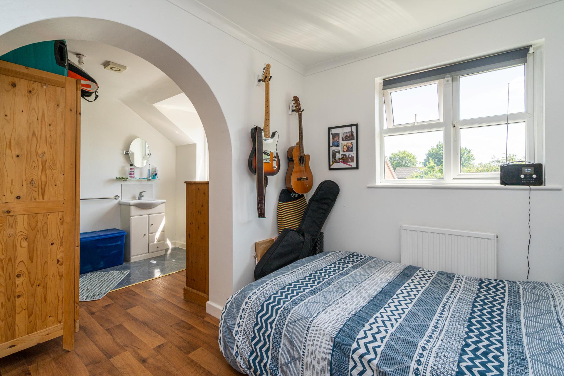 Upstairs, the landing, with loft access and airing cupboard gives access to the four bedrooms, all of which are doubles and one with an en-suite shower room. The family bathroom has twin sinks, w.c and bath with shower attachment.