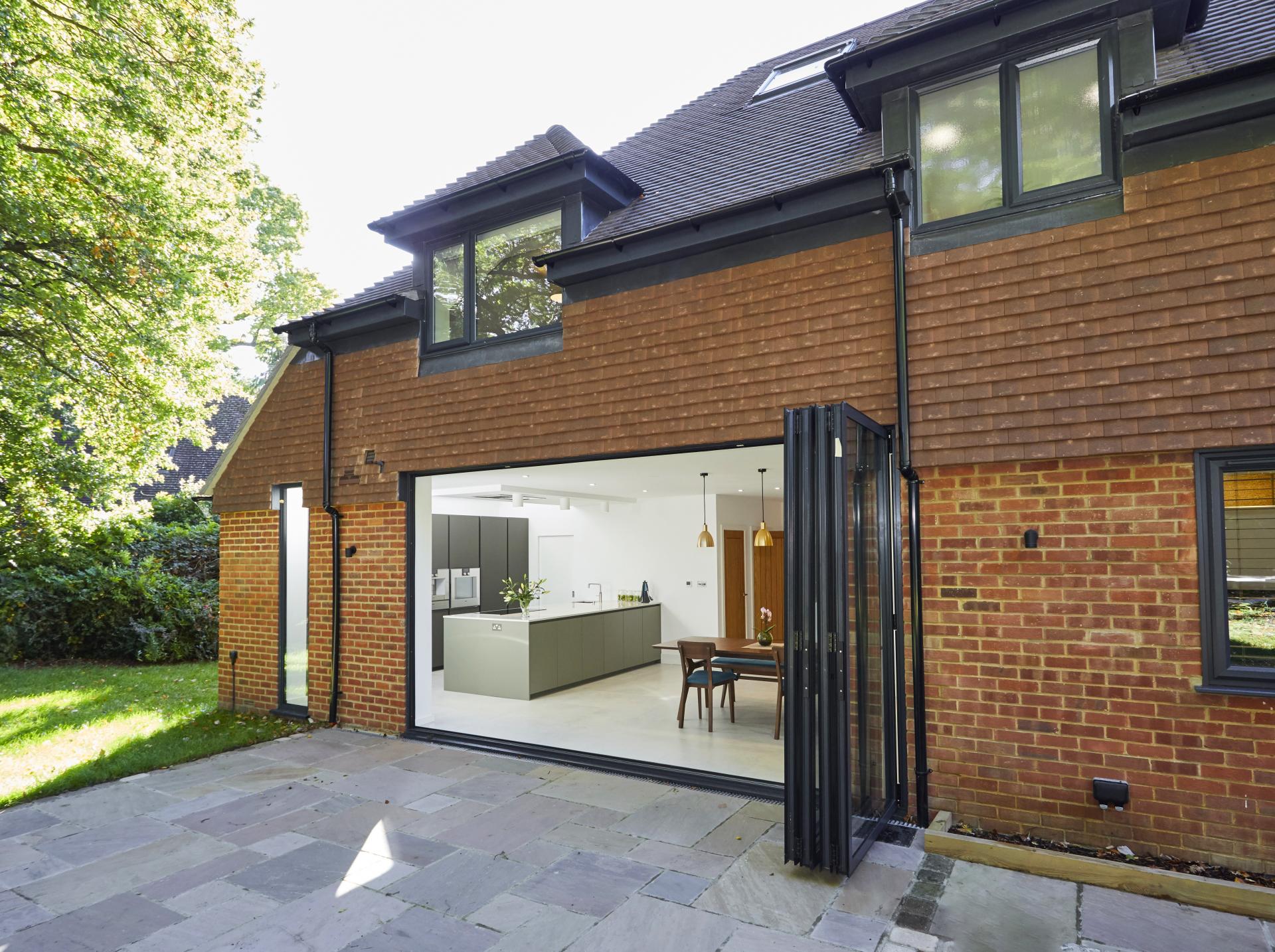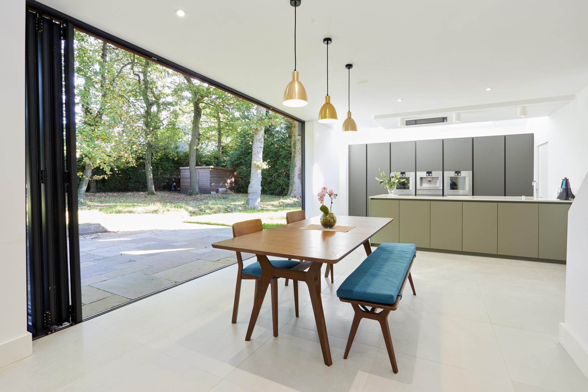 The house is approached via a large gravel driveway which offers ample parking provision for several cars and an integral garage. The front door leads to a spacious Entrance Hall which opens up to the magnificent kitchen/diner/lounge, offering a large peninsula featuring an undermount Franke sink complete with boiling water tap and Siemens IQ 5 ring induction hob set in to a quartz worktop, a high bank of units with pull out drawers, built in fridge and freezer and two Gaggenau ovens which are complimented with a Gaggenau warming drawer and Gaggenau Coffee machine. Large floor to ceiling Bi folding doors open up to a patio and private, secluded garden. There is ample space for a large dining table and a family lounge with Cat 6 cabling making this the perfect entertaining space. The utility is accessed from the kitchen via a pocket door. There is also a downstairs Shower Room and large manifold/storage cupboard. The Living Room, which also benefits from Cat 6 cabling and has two large windows and leads from the Hallway. Further ground floor accommodation comprises of a Study with a large solid oak desk.