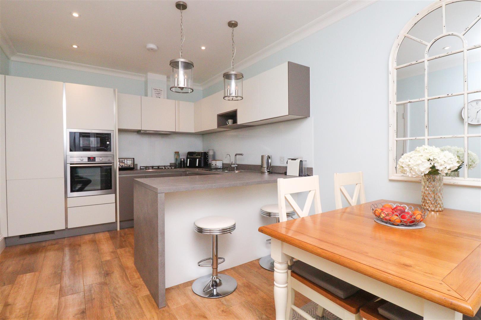 Accommodation comprises of a spacious entrance hall which leads into the light and airy sitting room which gives you access to the rear garden. Next to the sitting room a set of French doors open into the study which offers views over the rear garden. The kitchen/dining area has been finished to a high standard and offers a range of appliances which include oven, hob, fridge/freezer, dishwasher and plenty of storage. The ground floor accommodation is finished with the downstairs W.C and access into the garage.