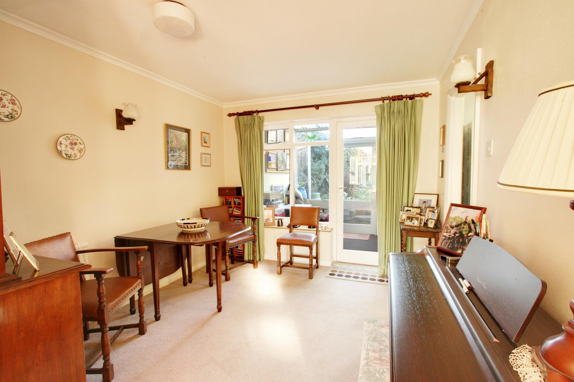 The house is approached via an Entrance Porch, leading to a spacious Entrance Hall with staircase to the first floor. The Sitting Room has a large south facing picture window and a fireplace with electric fire. This in turn leads to a Dining Room with a door to a rear Garden Room, giving access to the Garden.