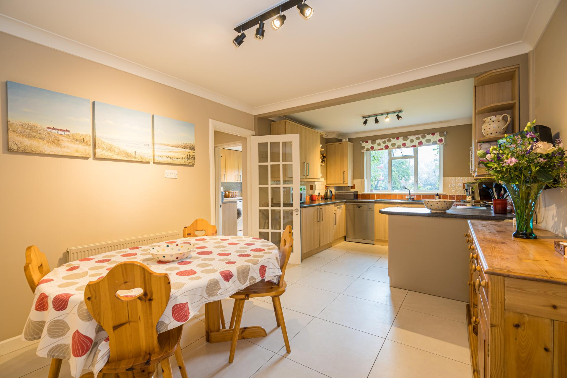The Kitchen/Breakfast Room with L shaped work tops incorporating some integrated appliances including a dishwasher, undercounter fridge and freezer set to ample work top with sink unit and oven with hob and extractor above. The Kitchen leads to a Utility Room with ample space for further appliances under work top and further storage units. There is a separate Dining Room and a downstairs Cloakroom and further reception room ideal for a Home Office if required.