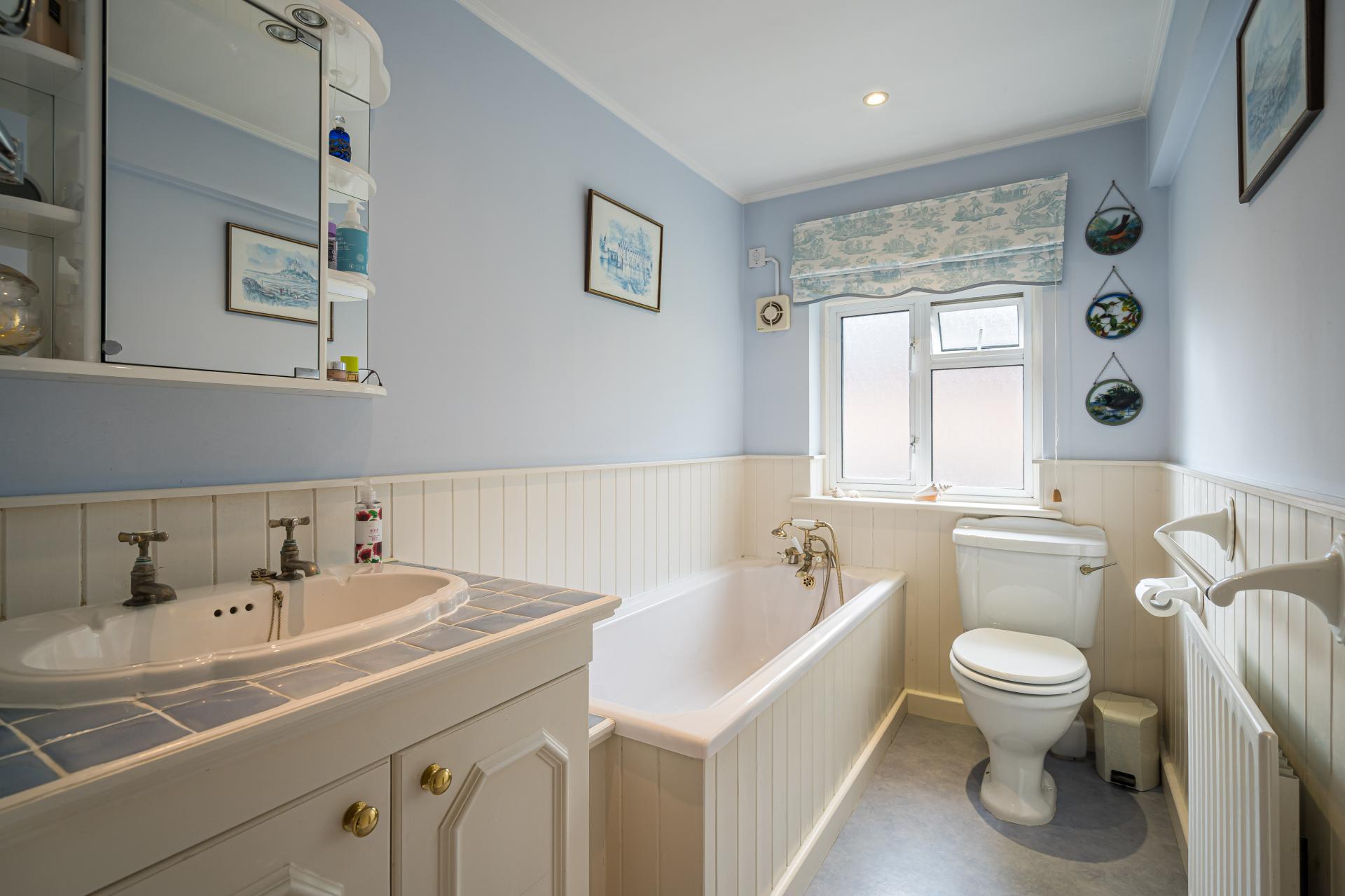 The property is approached over a good-sized driveway which gives access to the garage, side gate and front door. There is a varieity of mature shurbs and planting to the boundary providing interest and privacy and a courtesy porch above the front door.