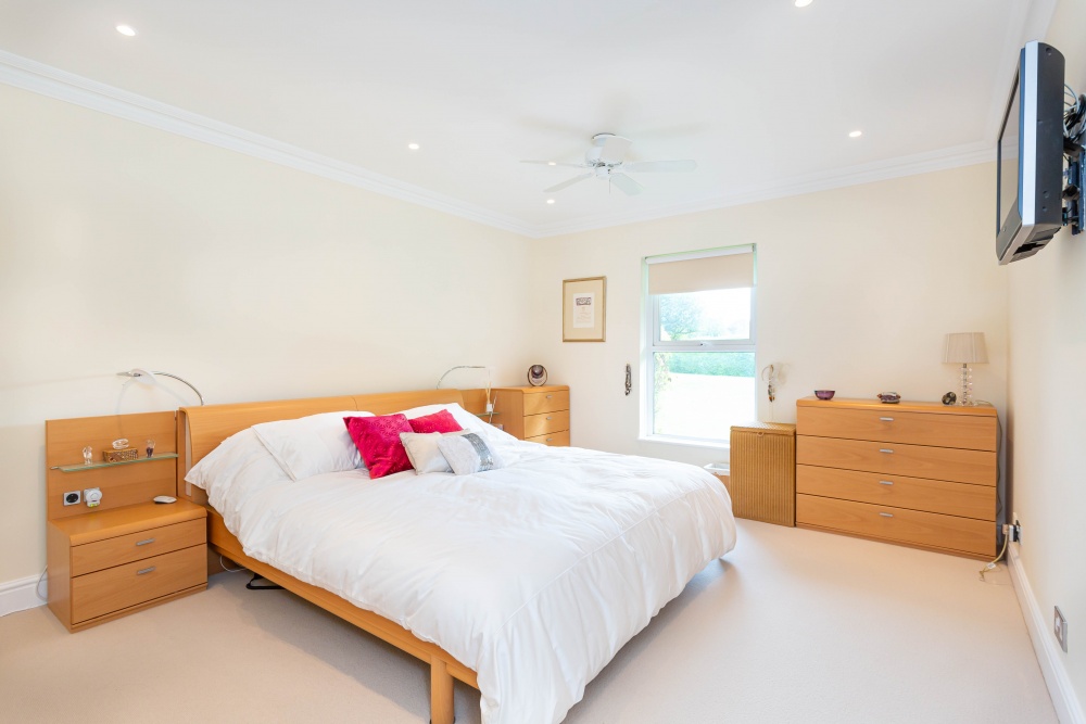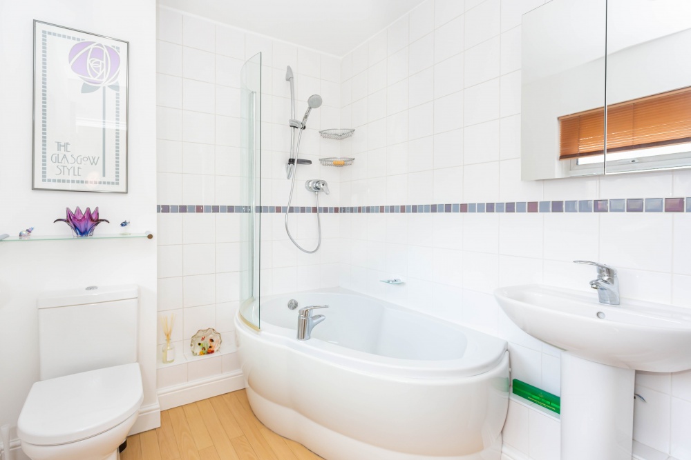 Along the hallway are three double bedrooms. Bedroom One has a range of fitted wardrobes and ceiling fan. Bedroom Two has a further range of fitted wardrobes and access to the large boarded loft providing plenty of storage space with ladder and light. Bedroom Three is currently in use as a Study. The Family Bathroom is fitted with a corner bath with shower attachment, w.c, sink unit and heated towel rail.