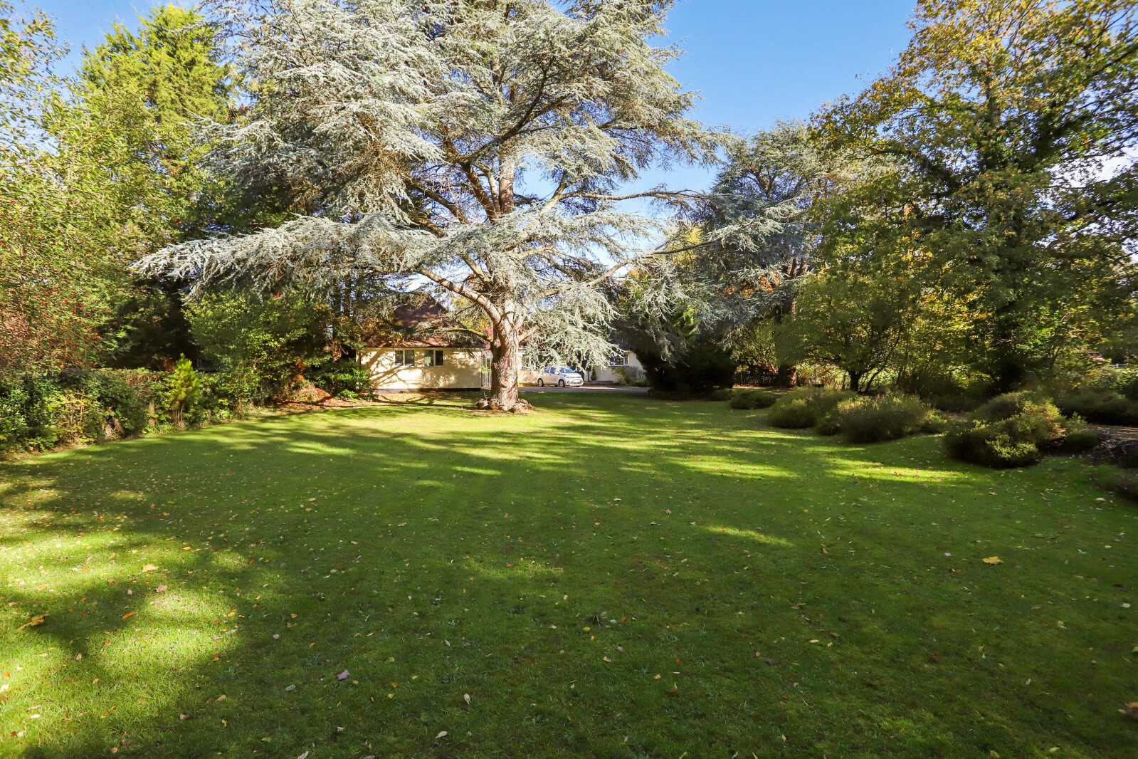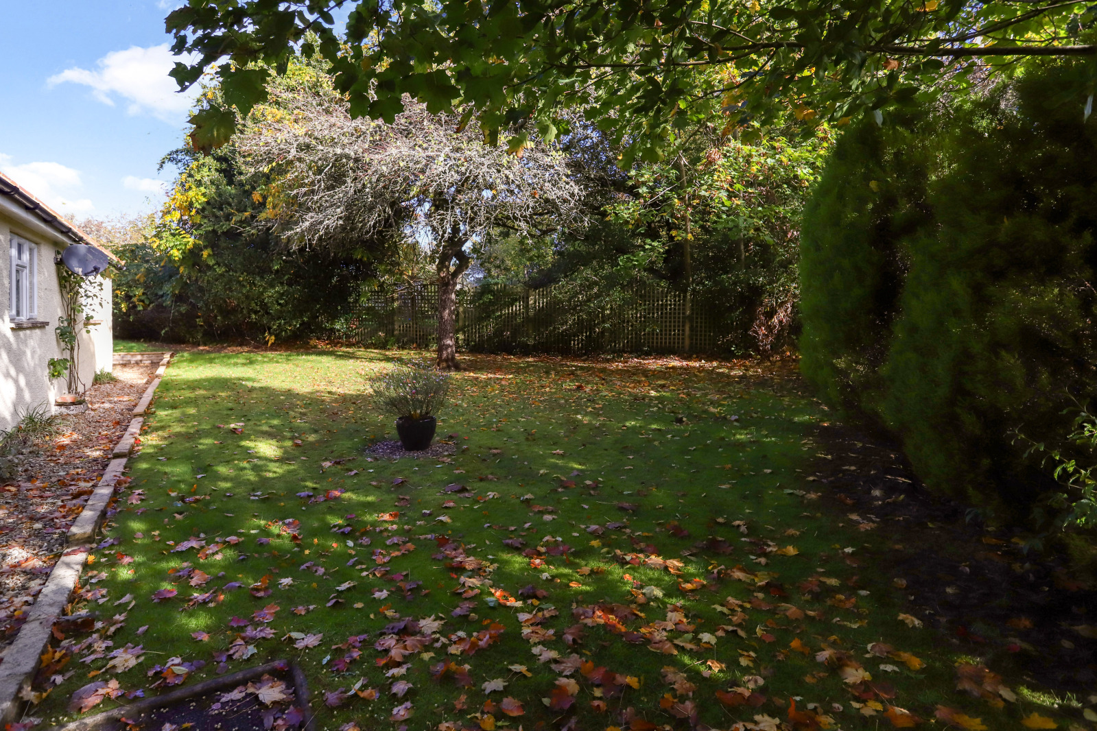 Outside The property is approached via a private driveway providing ample parking and access to a double garage. The front garden is mainly laid to lawn with mature planting, offering a high degree of privacy. To the rear, a secluded enclosed garden features a patio area ideal for outdoor dining and entertaining, surrounded by established borders and lawns.