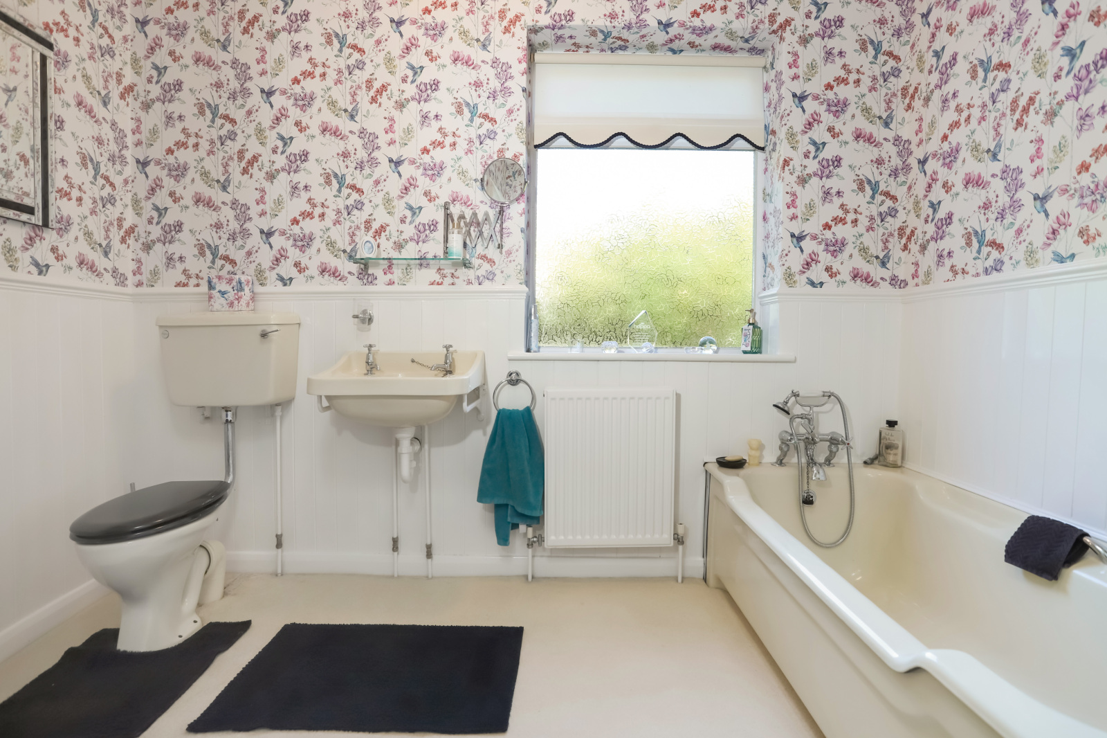 There are three generous bedrooms, each with good proportions. The principal bedroom benefits from a private en suite shower room and adjoins a useful study or cot room, perfect for those working from home or seeking additional nursery space. A family bathroom serves the remaining bedrooms.