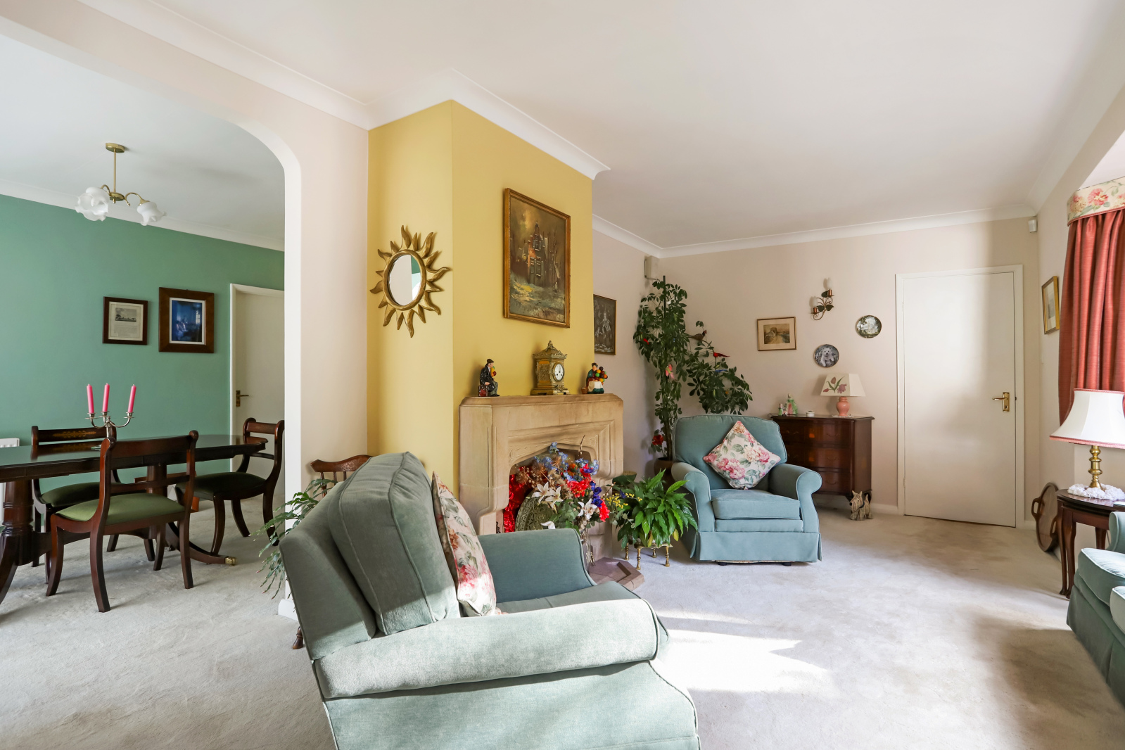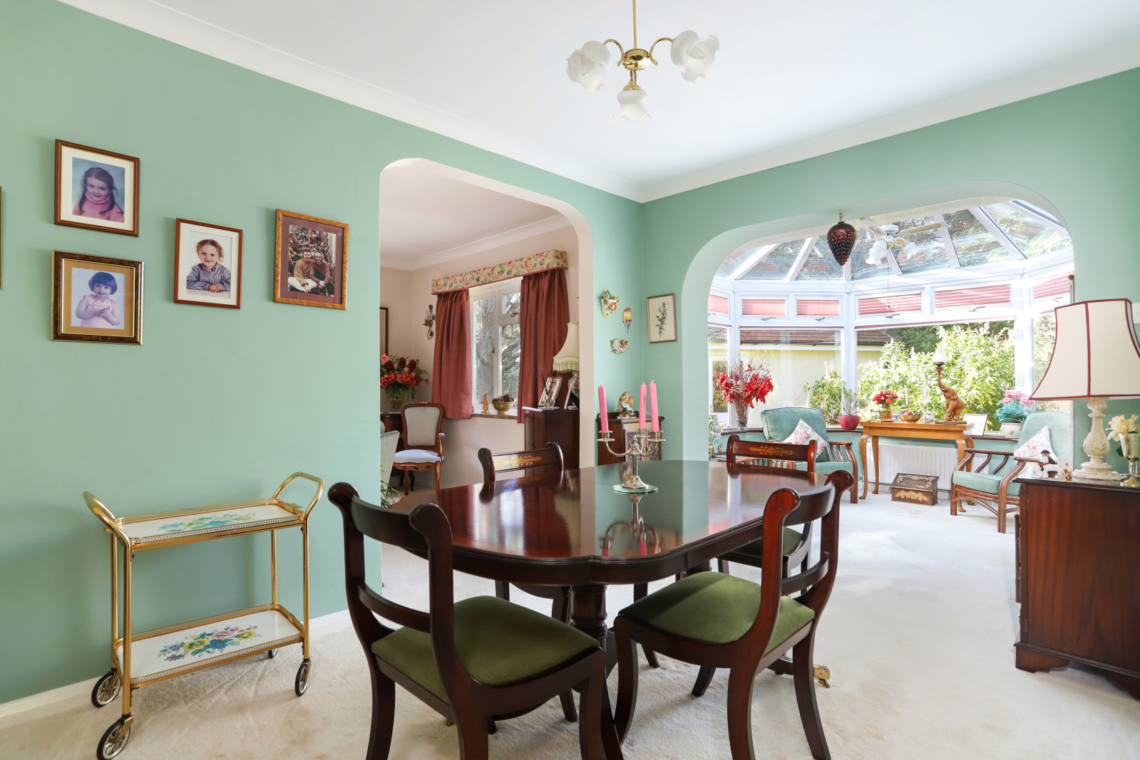 Spacious living room, dining room, and conservatory