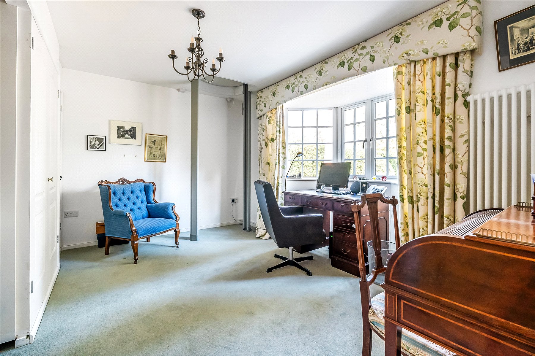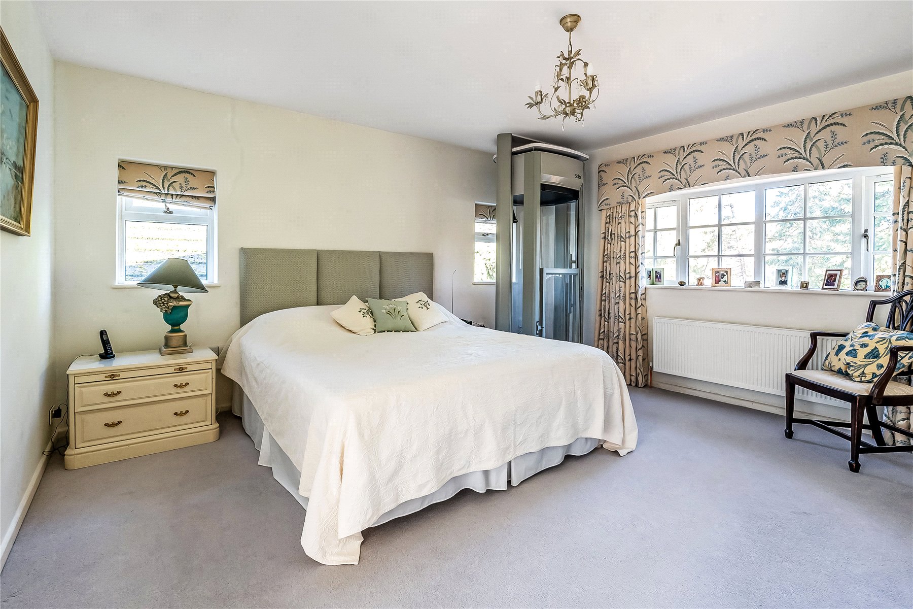Finally to the ground floor is a spacious study/bedroom 4 with a front aspect bay window and built in cupboards. There is currently a lift fitted within this room offering access to the master bedroom on the 1st floor.