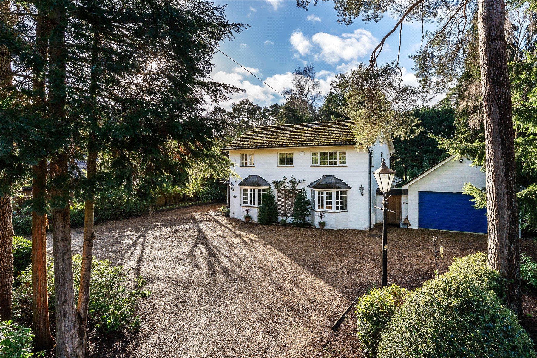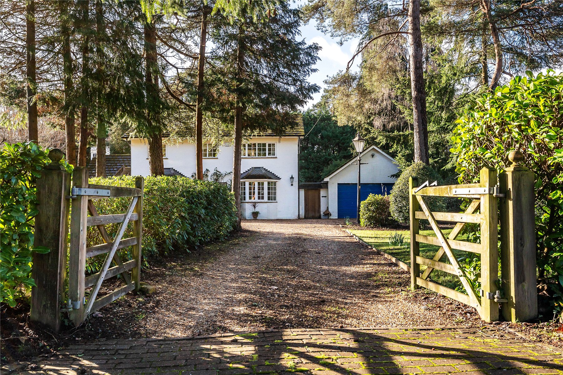 The house is approached via a substantial in and out gravel driveway offering plenty of parking whilst still offering a high degree of privacy from the lane thanks to a mature display of rhododendrons. The parking is supported by a detached double garage with electric up and over door, light, power and storage above.