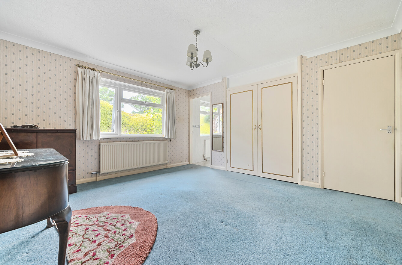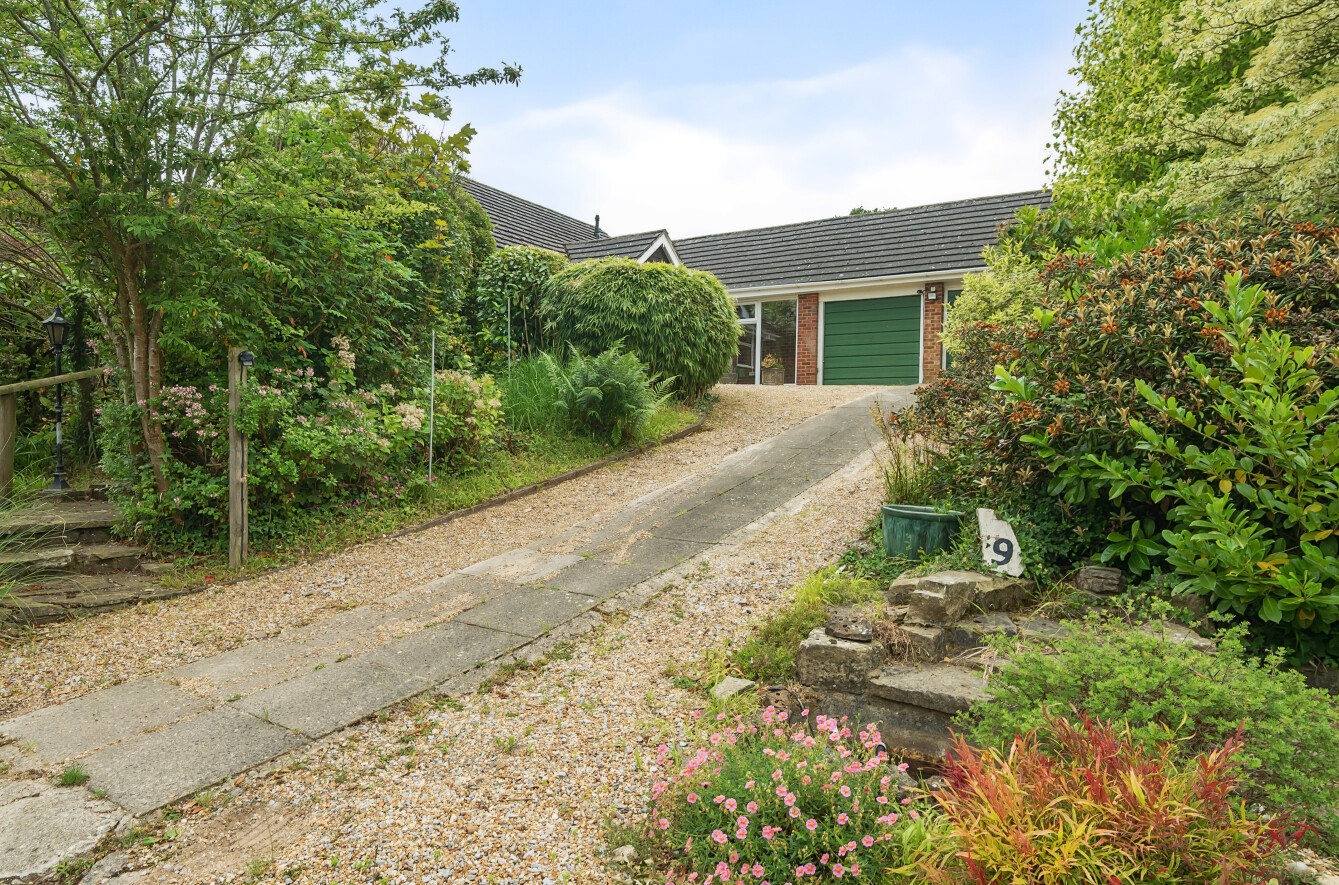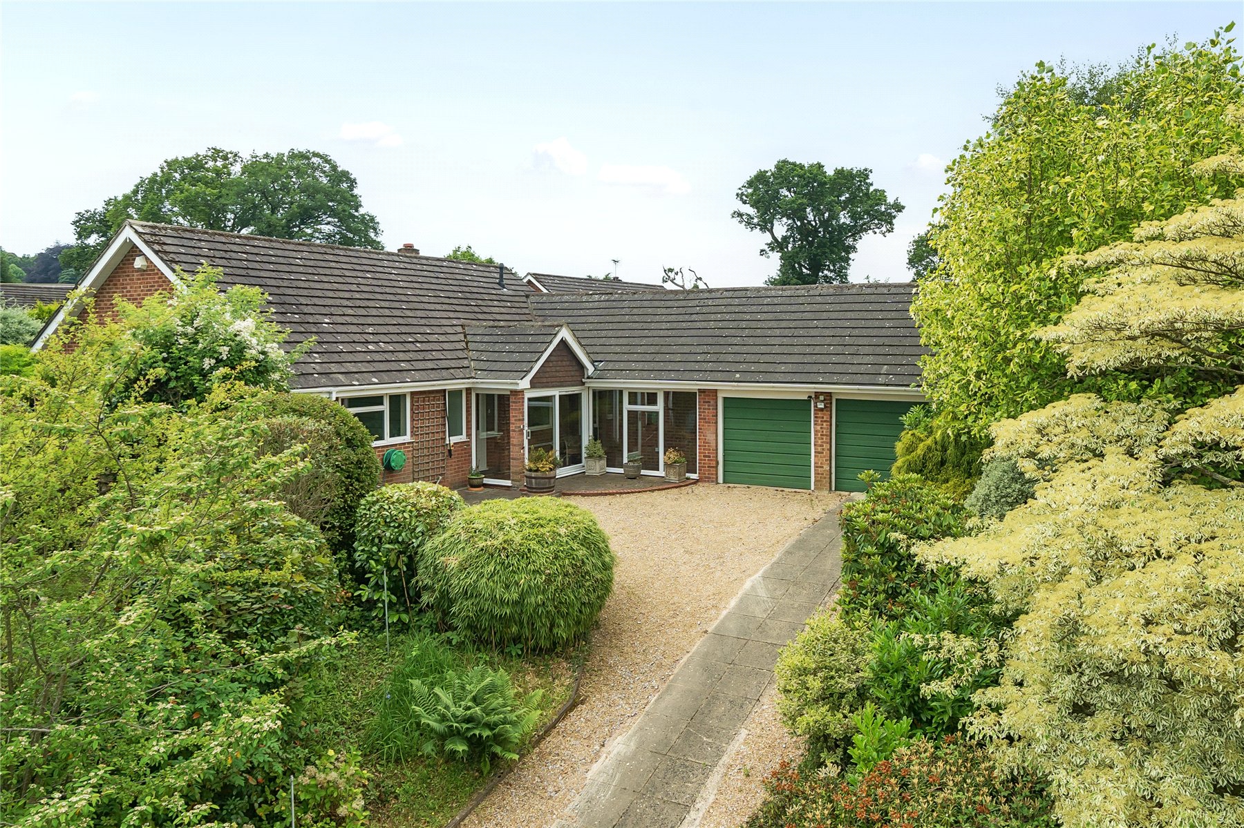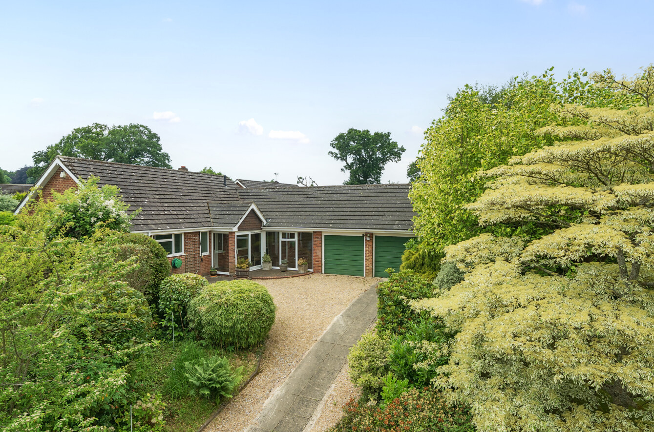Generous detached bungalow situated in grounds of approx. quarter of an acre within a quiet cul de sac in the highly desired Surry Hills village of Churt.