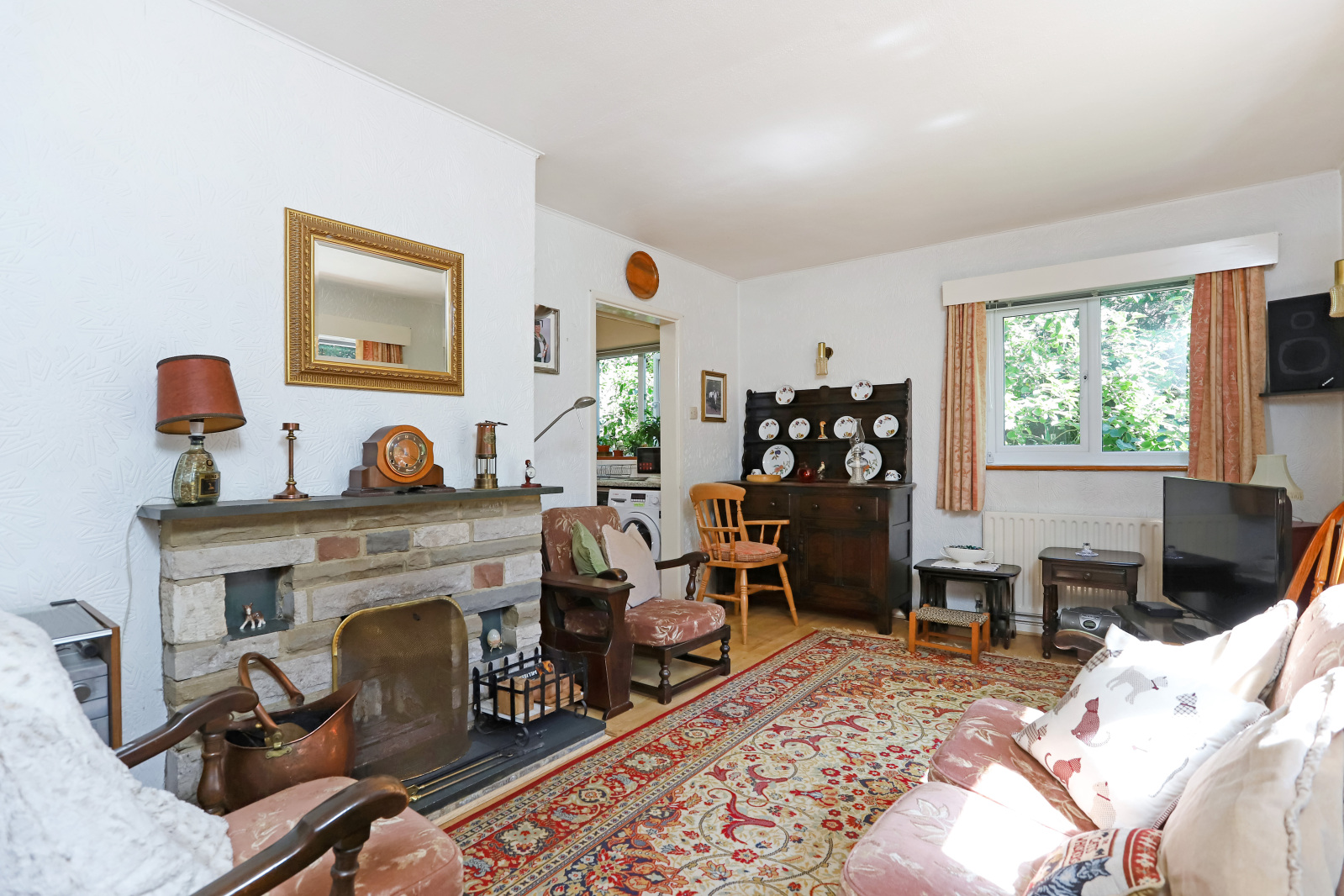 Sitting Room Double aspect, open fire with stone surround and mantle over.
