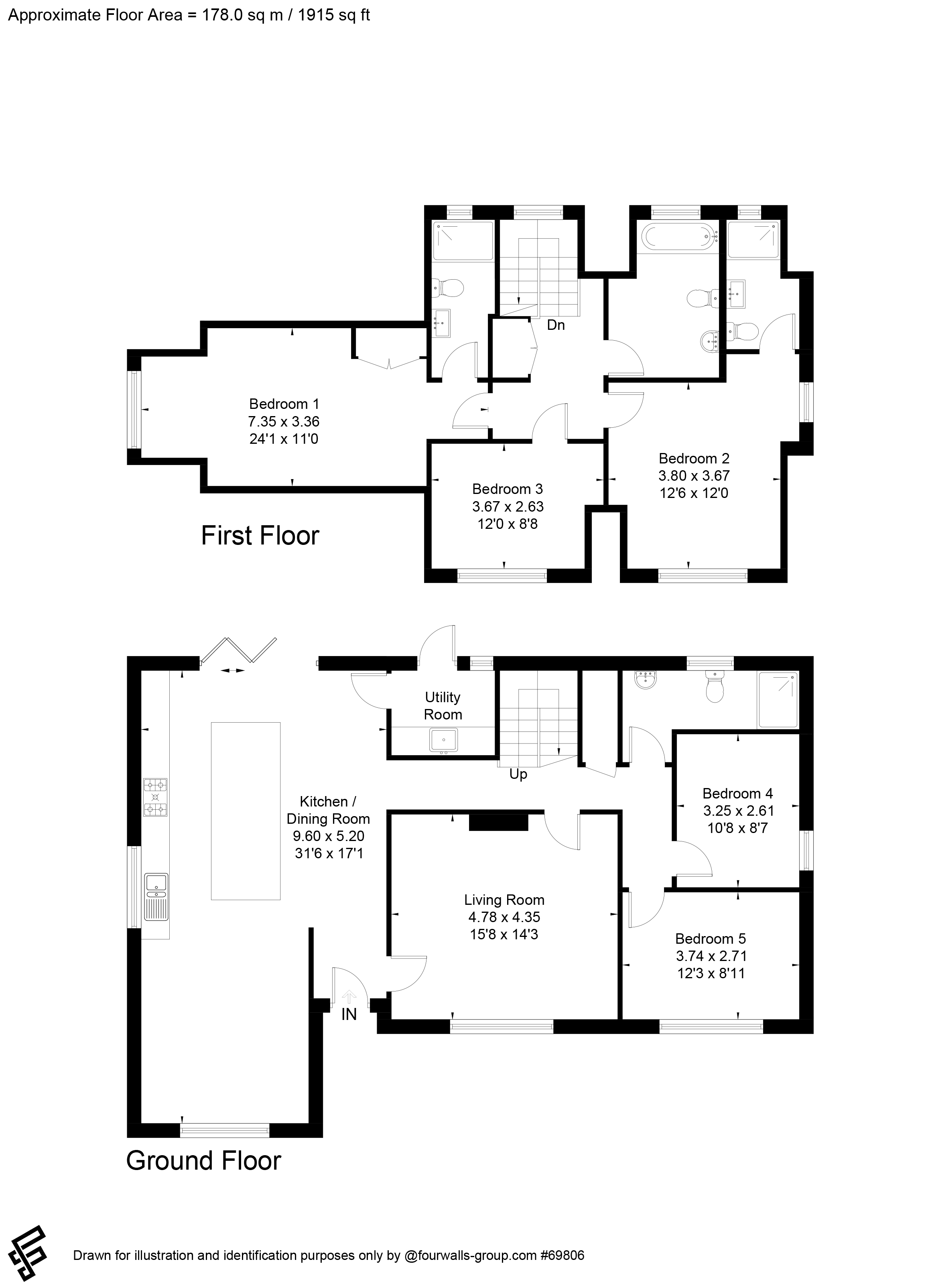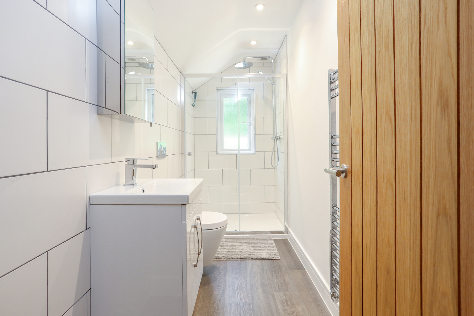 En-suite shower room Walk-in shower, w.c., wash basin, extractor fan, heated towel rail.