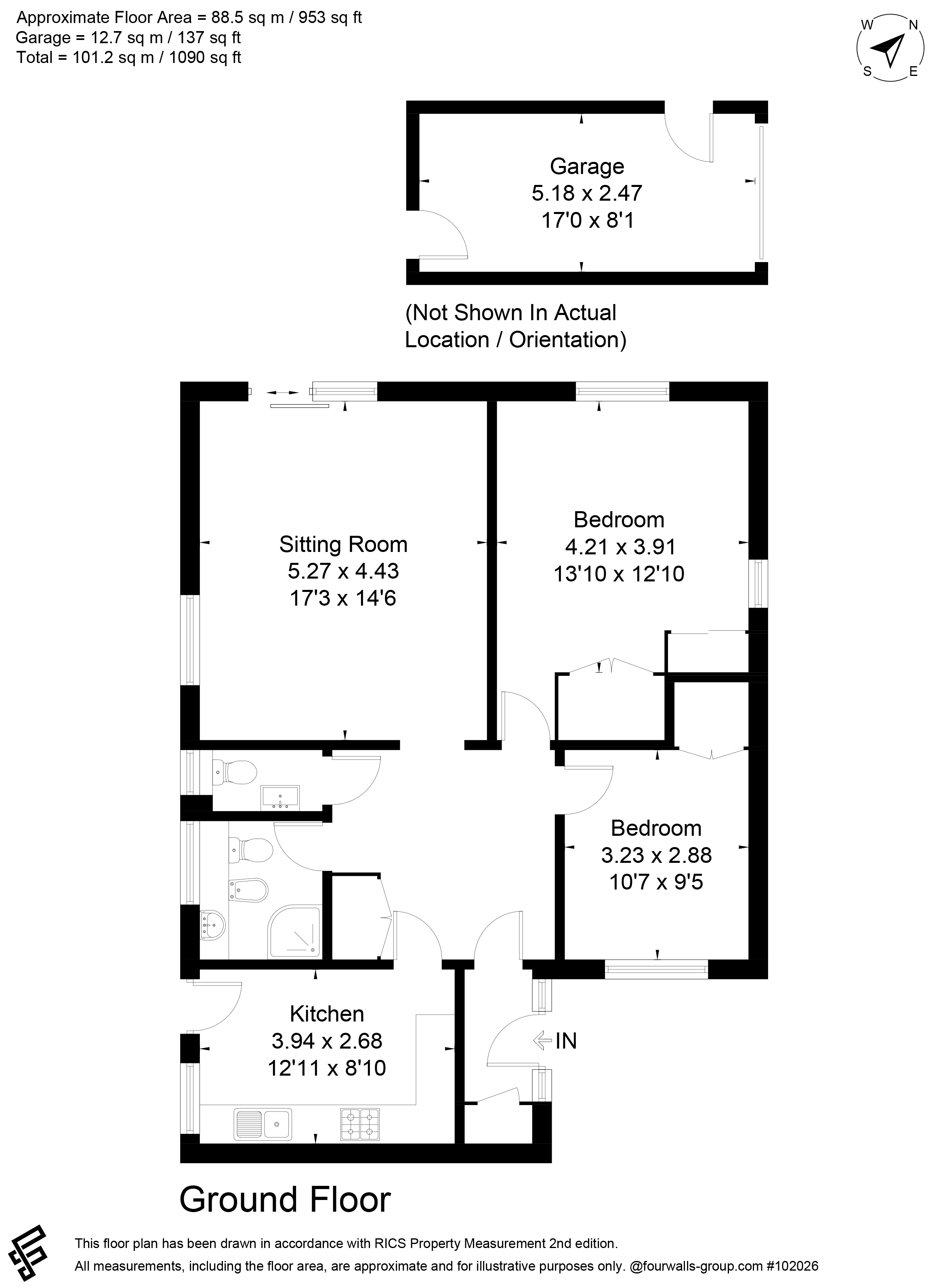 Outside - Front Garage with electric roller door, power and light, two doors to rear garden. Side gate.