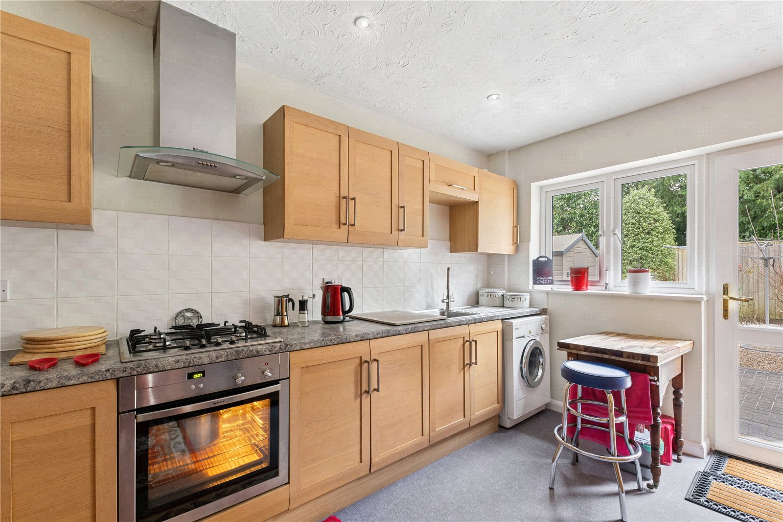 Kitchen/Breakfast Room Side aspect, well fitted and comprising sink unit with mixer tap, excellent range of eye and base level units, roll edge work surfaces, Neff gas hob and electric oven, extractor hood, plumbing for washing machine, space for fridge/freezer, cupboard housing gas fired boiler. Casement door to rear garden.