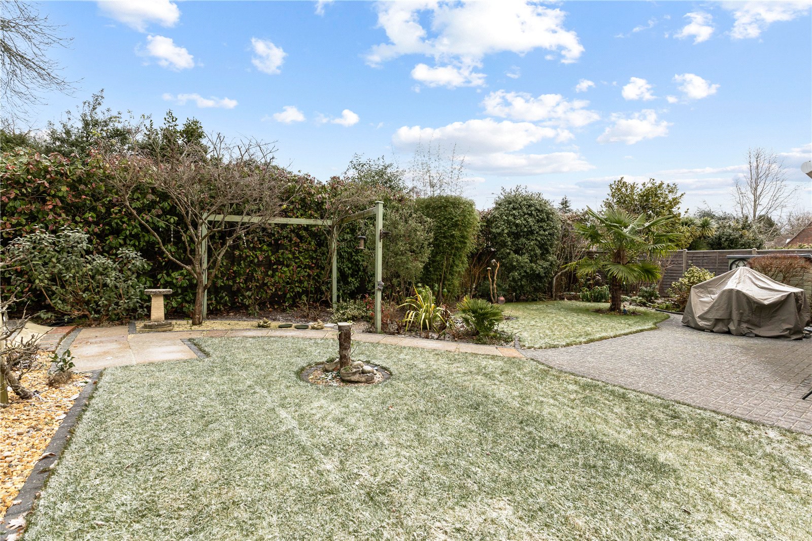 Outside - Rear Beautifully landscaped rear garden incorporating brick paved patios/seating areas ideal for entertaining and al fresco dining, shaped areas of lawn, mature borders and shingled pathways, screened and enclosed by mature hedging, shrubs and trees, outside power and light, outside tap, electric awnings. Summerhouse and 2 sheds.