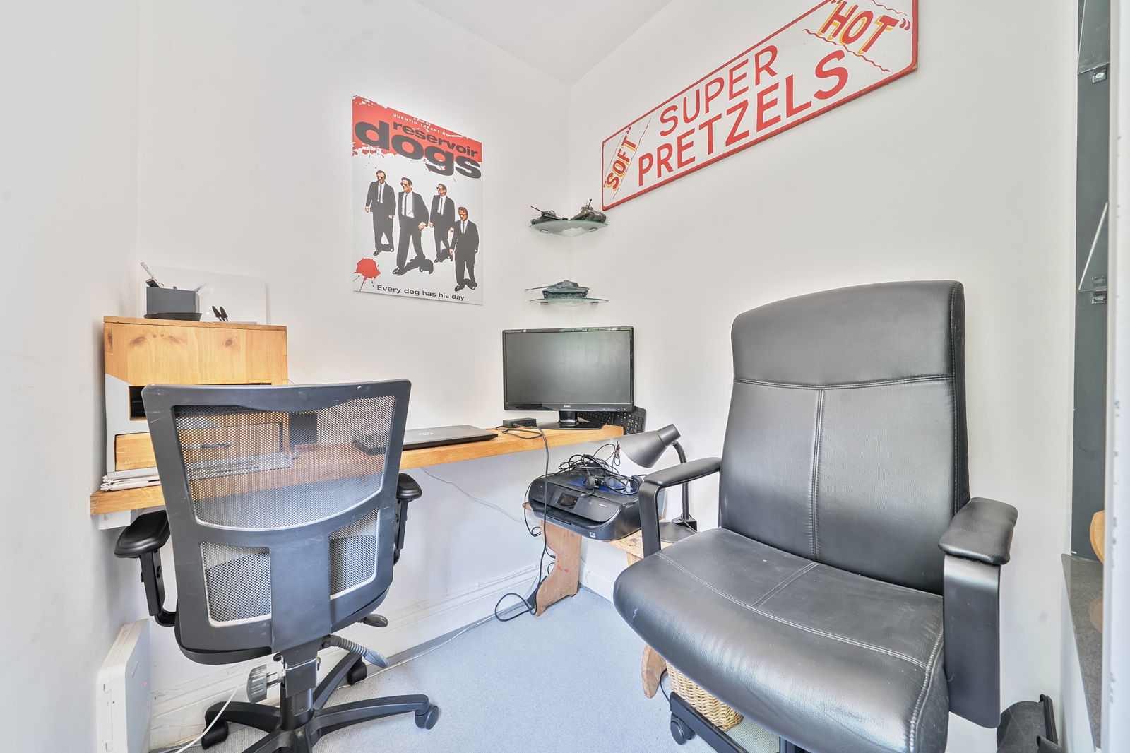 The property boasts four generously sized bedrooms, with the principal bedroom offering an ensuite dressing area, and two others located on the first floor alongside a stylish family bathroom. A fourth bedroom on the ground floor offers the potential for guest accommodation or, with the adjoining bathroom, offer a separate bedroom suite for someone less able to deal with the stairs. In addition to the main house, a detached outbuilding provides a further office space, ideal for remote working or creative use.