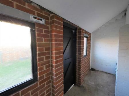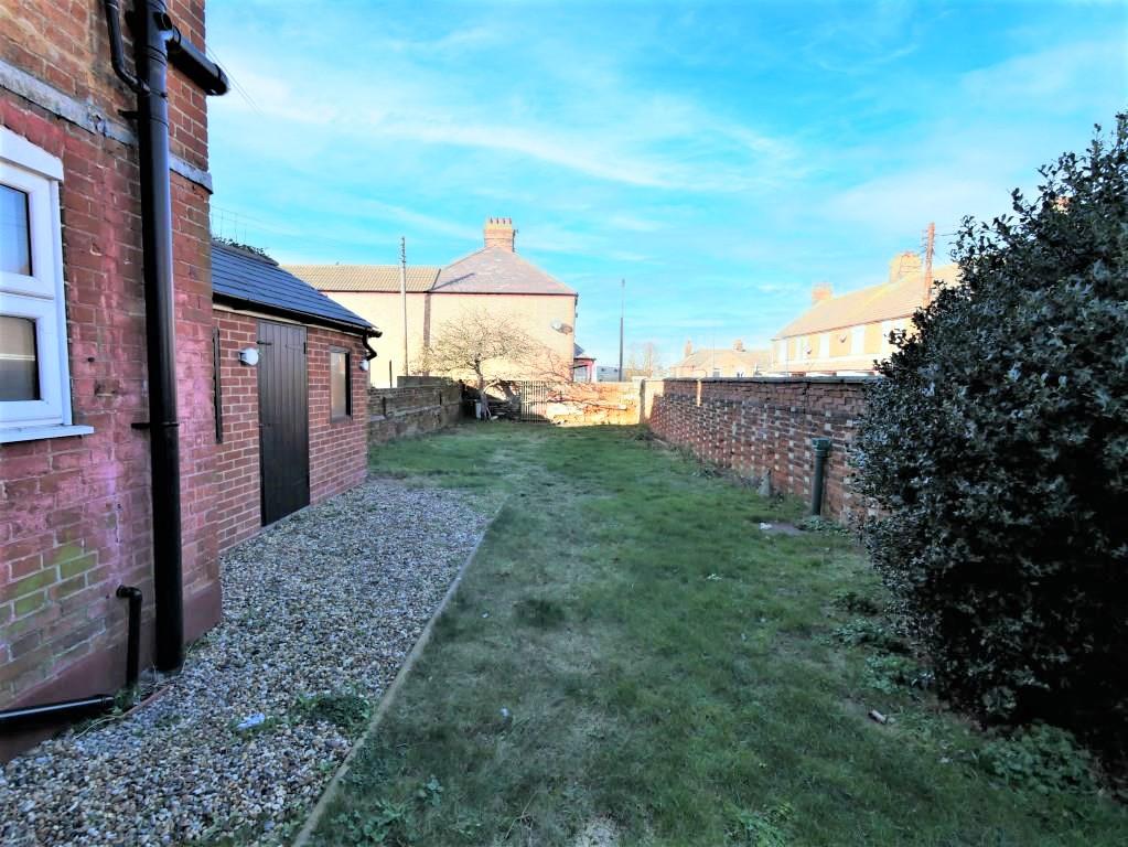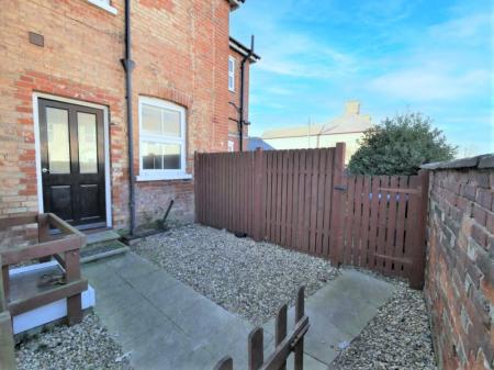 OUTSIDE Wrap around walled garden with courtyard style entrance area with gate which opens to reveal an established lawn with paved pathway, shingled area and attached outbuilding/store with door entry and two windows to front measuring approximately 12' 10" x 4'.